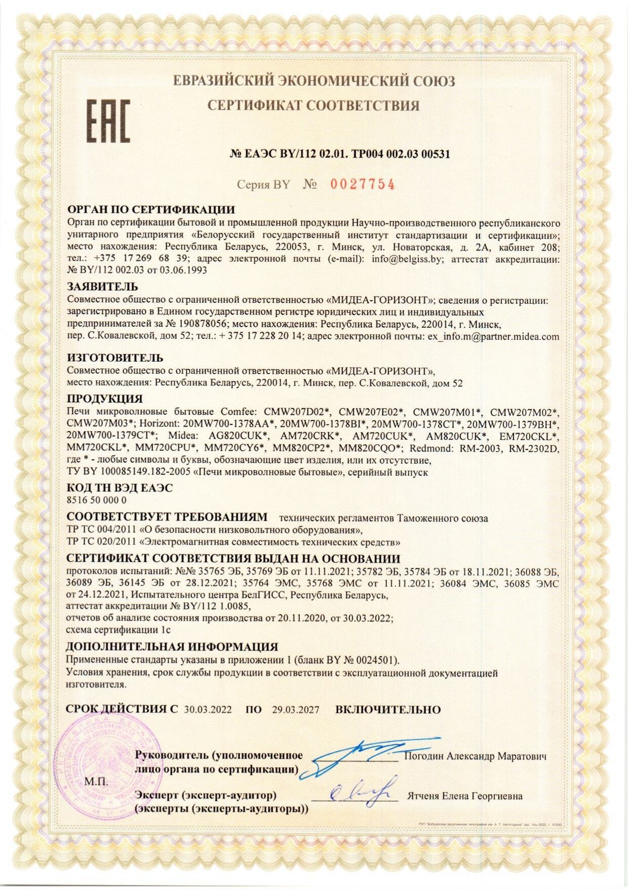 Микроволновая печь MIDEA AM820CMF, объем 20 л, мощность 800 Вт, механическое управление