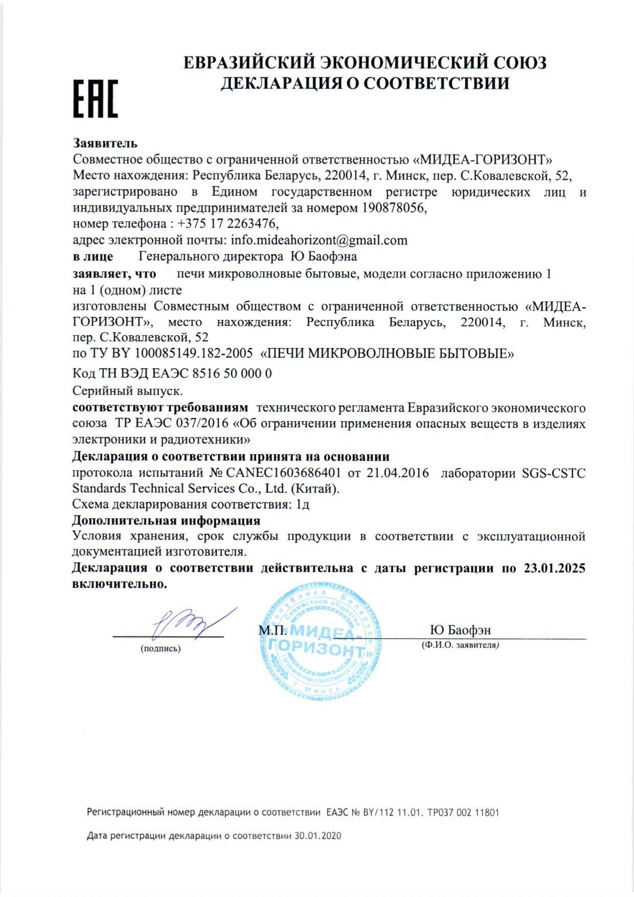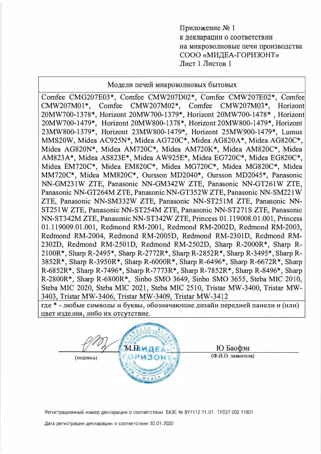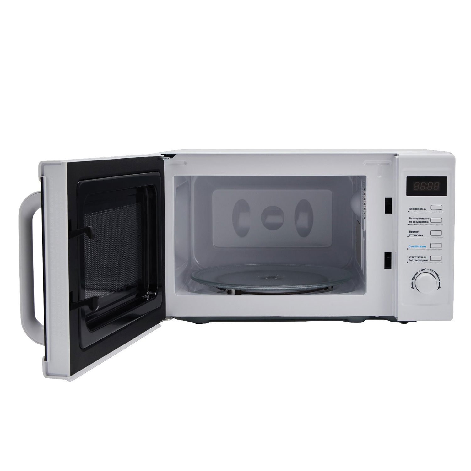Модель объемом 20 л имеет внутреннее покрытие из эмали высокого качества, за которым легко ухаживать. Также устройство оснащено режимом разморозки, который позволяет выставить время и объем продуктов. Электронное управление осуществляется с помощью кнопочных переключателей. Микроволновая печь оснащена блокировкой от детей. Камера имеет приятную подсветку, которая позволяет наблюдать за приготовлением пищи. По окончании процесса микроволновая печь известит об этом с помощью звукового сигнала.