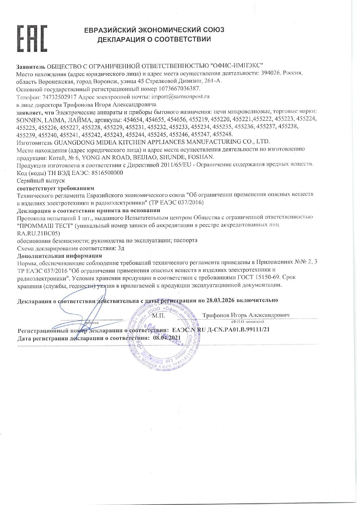 | Наличие звукового сигнала | да |