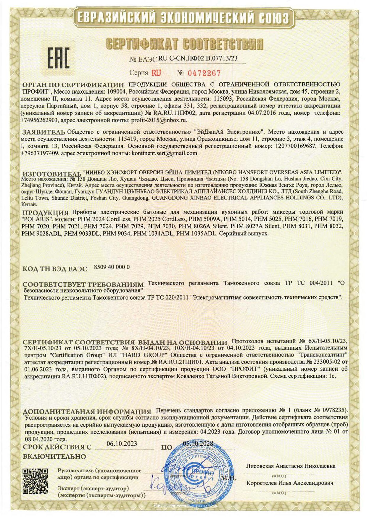 Миксер POLARIS PHM 5009A, 500 Вт, 6 скоростей, 2 венчика, 2 крюка для теста, черный, 25323