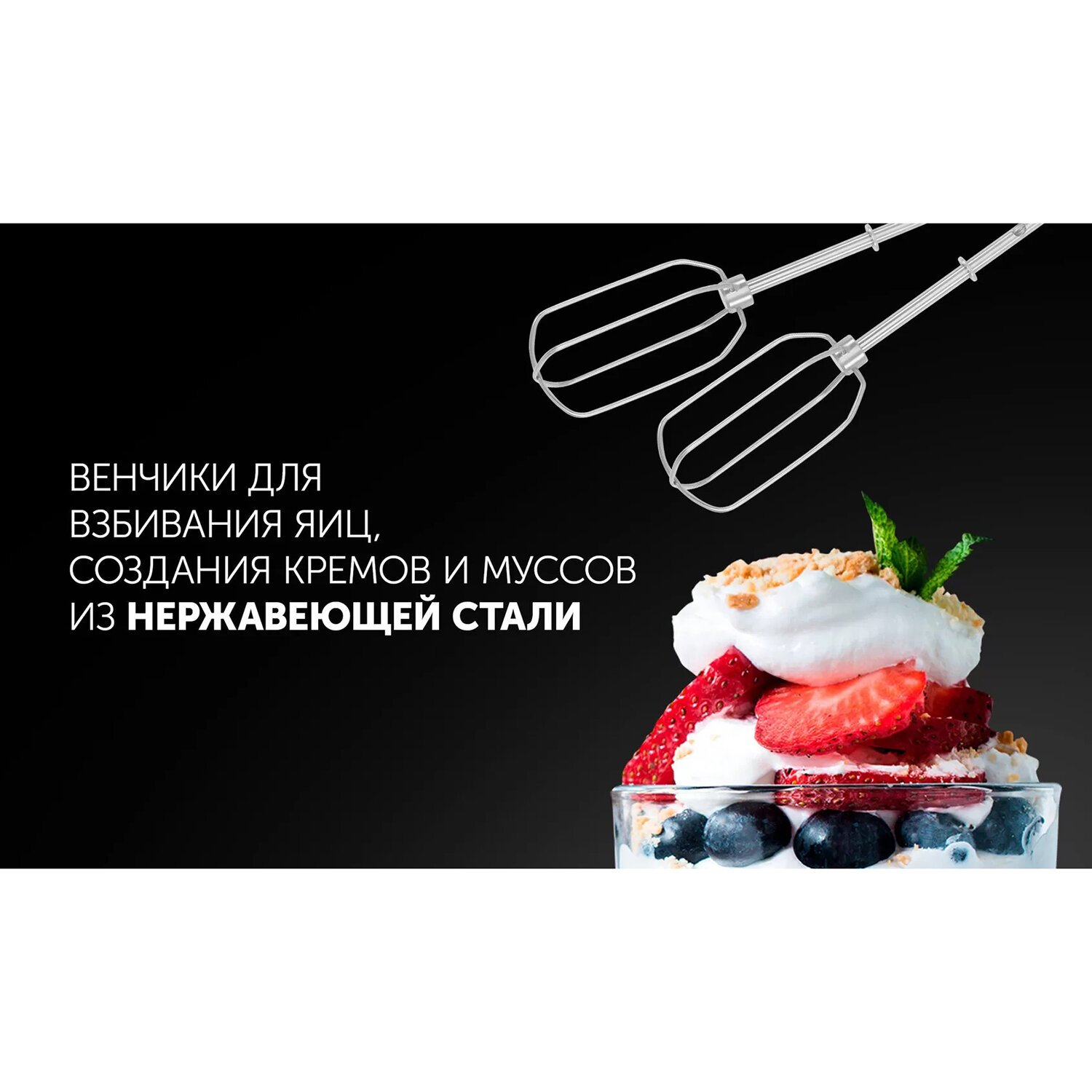 Обладая мощностью в 500 Вт он с легкостью справится с любыми кулинарными задачами – от взбивания белков до замешивания густого теста.