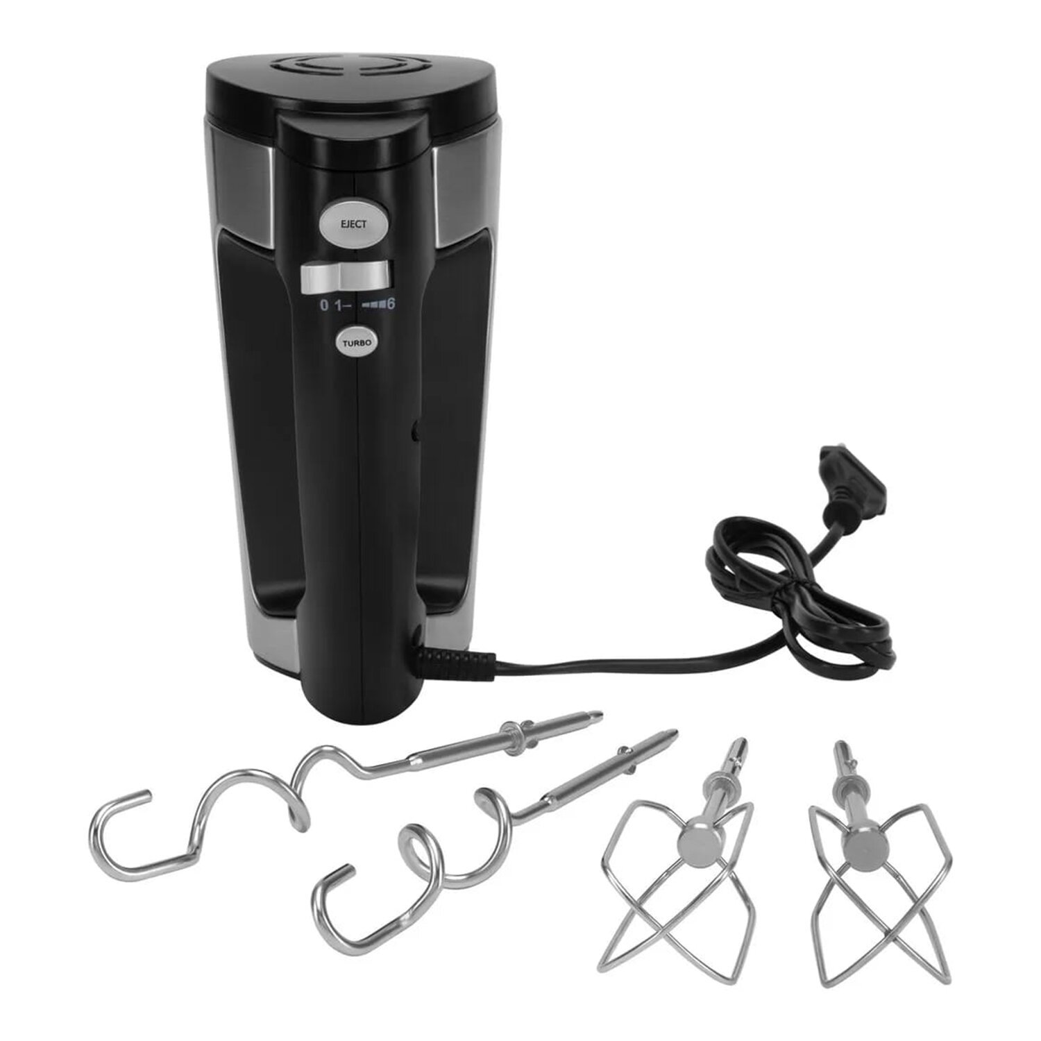 Миксер BRAYER BR1302, 800 Вт, 5 скоростей, 2 венчика, 2 крюка для теста, черный/серебро