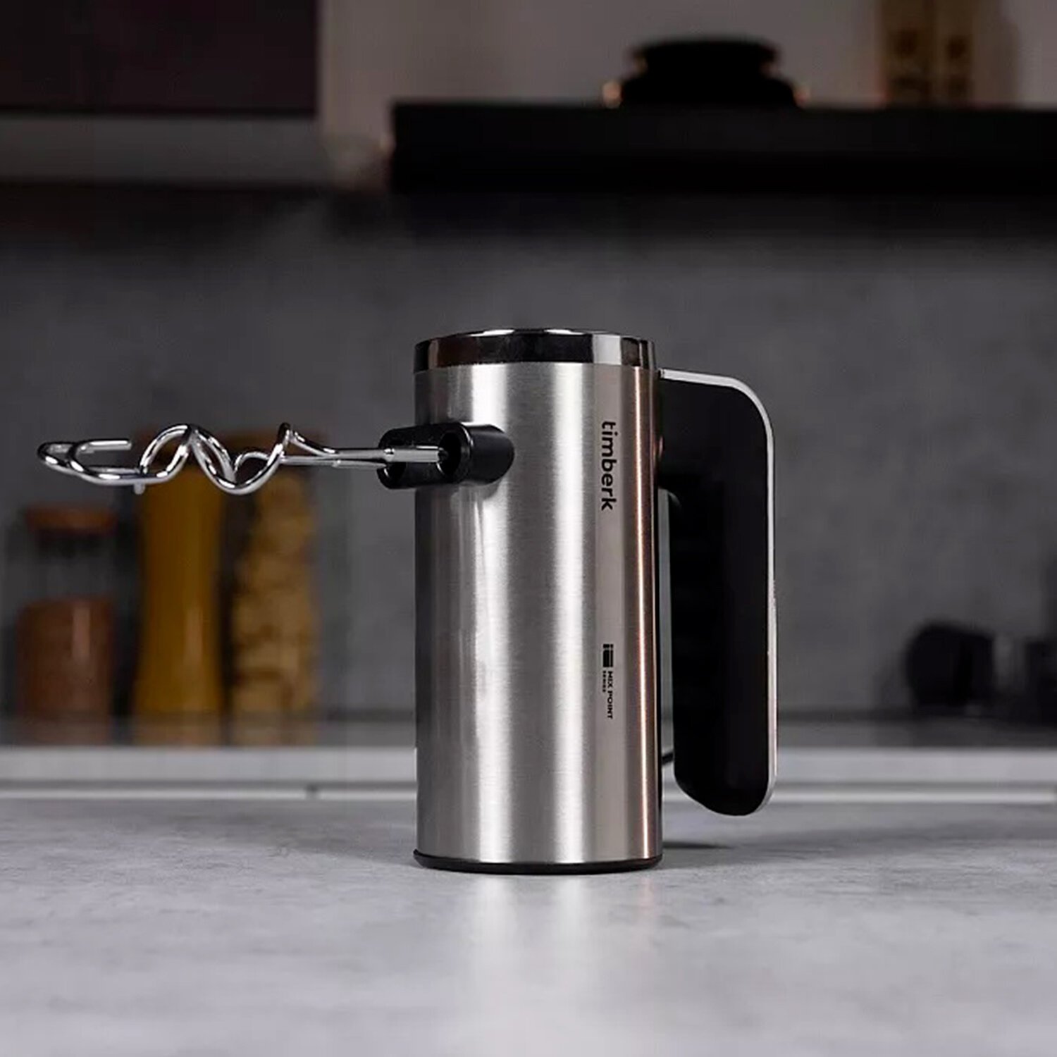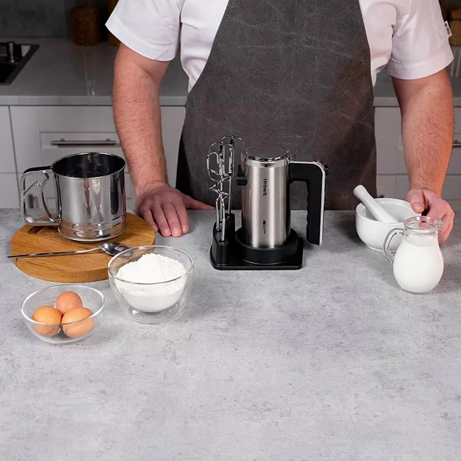 Миксер TIMBERK T-HM40S49, 550 Вт, 5 скоростей, 2 венчика, 2 крюка для теста, подставка, стальной