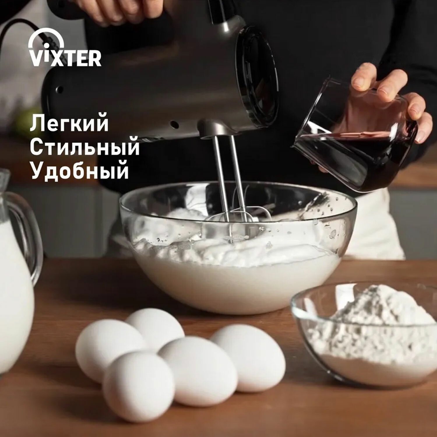 Миксер VIXTER VHM-3300, 700 Вт, 5 скоростей, 3 вида насадок, подставка, графит