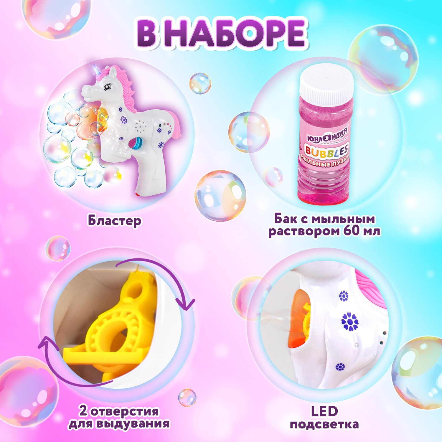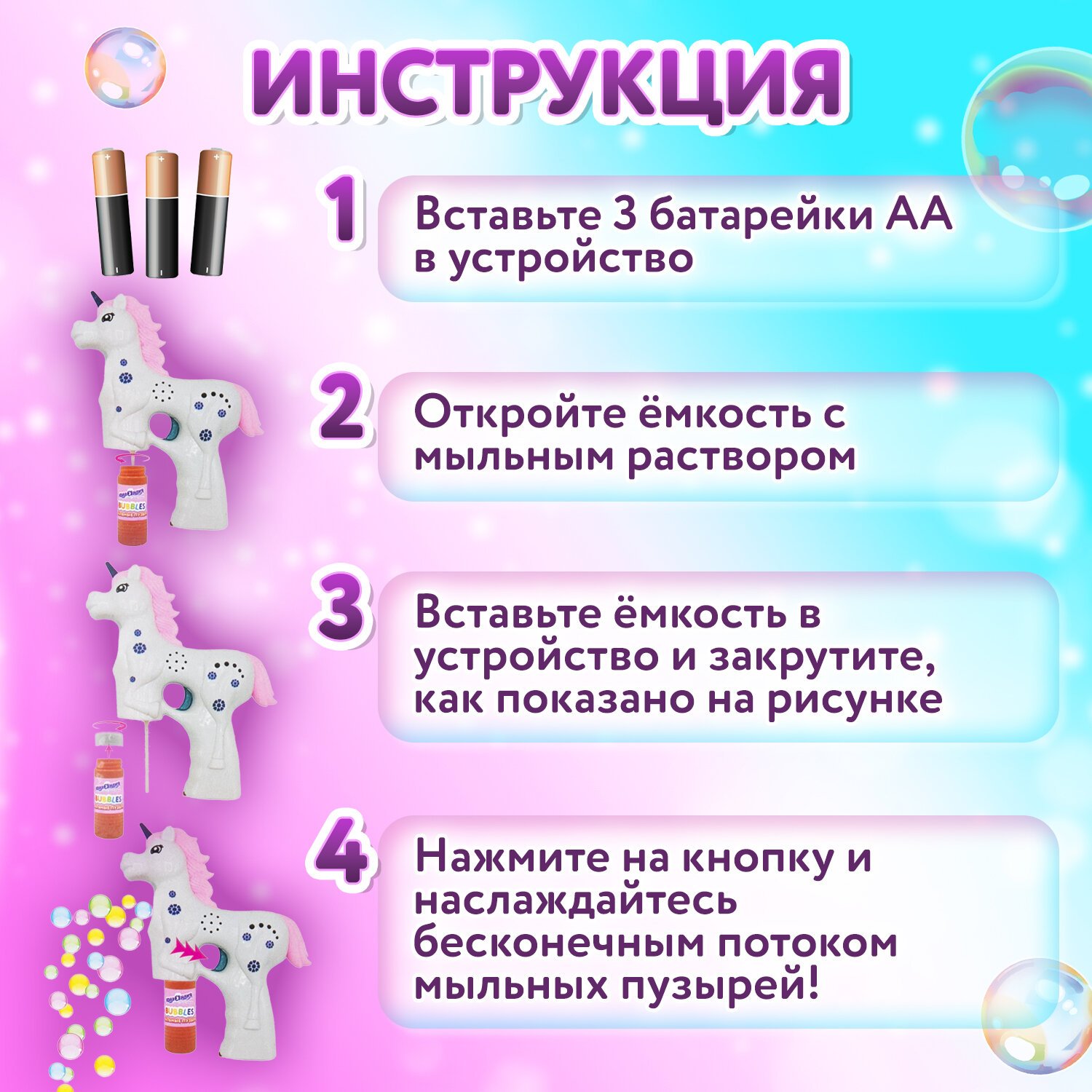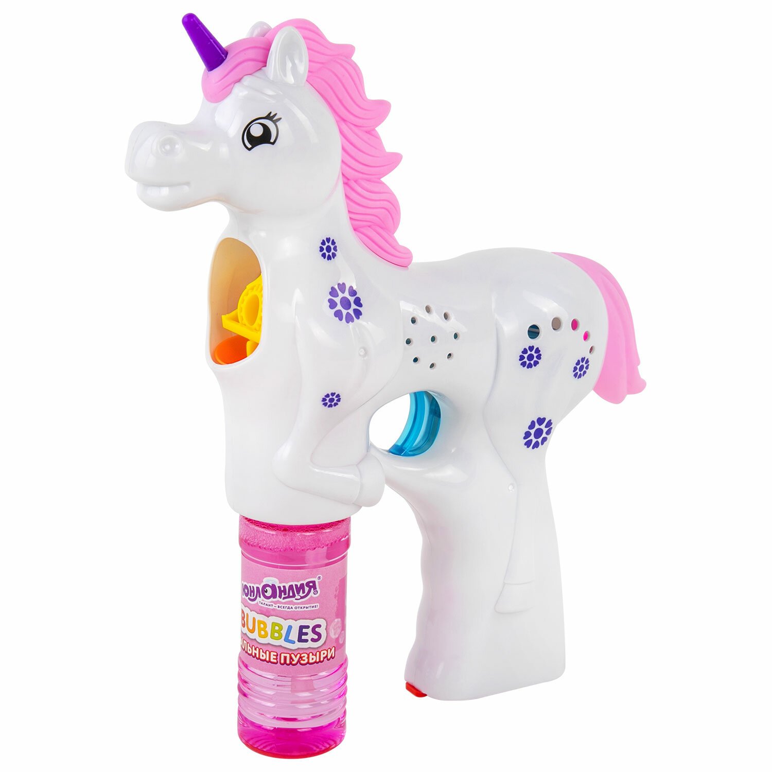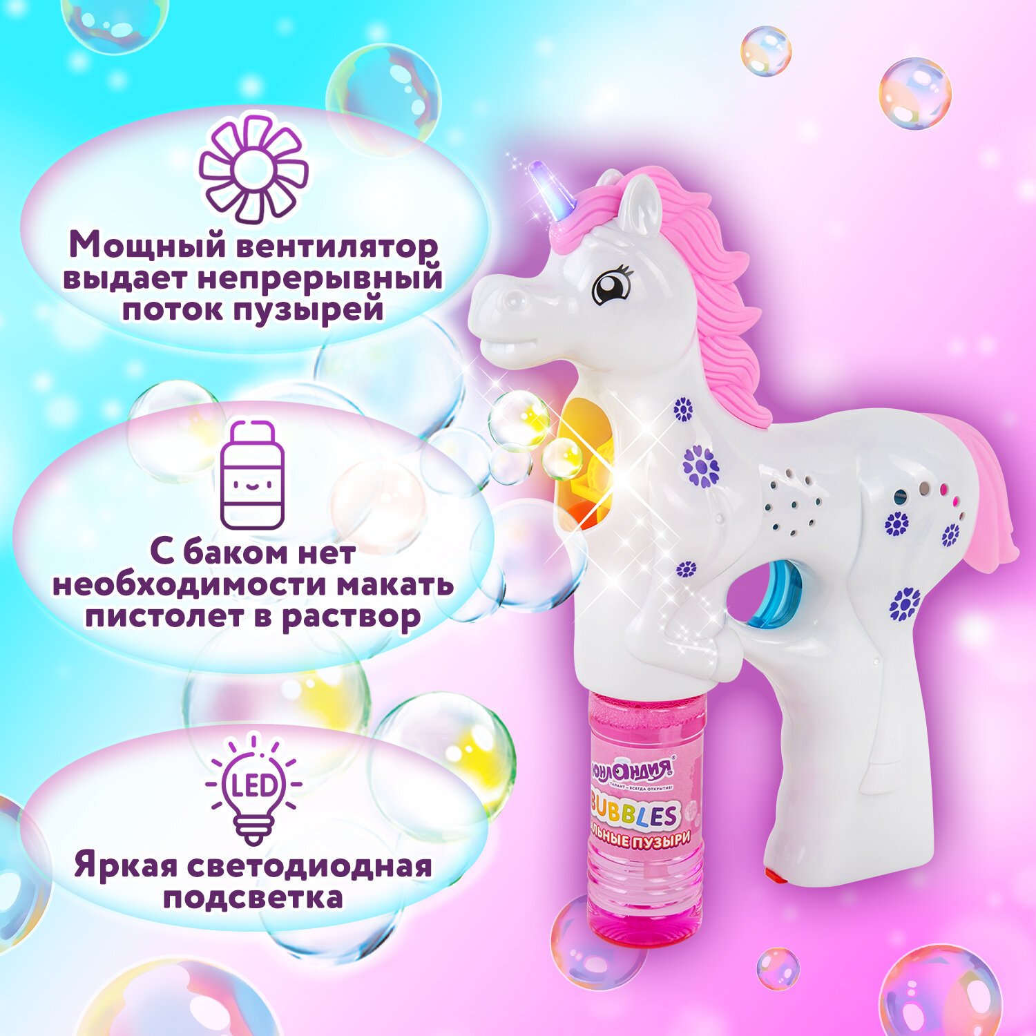 Мыльные пузыри "Пистолет автоматический ЕДИНОРОГ", с подсветкой, 60 мл, ЮНЛАНДИЯ, 664482