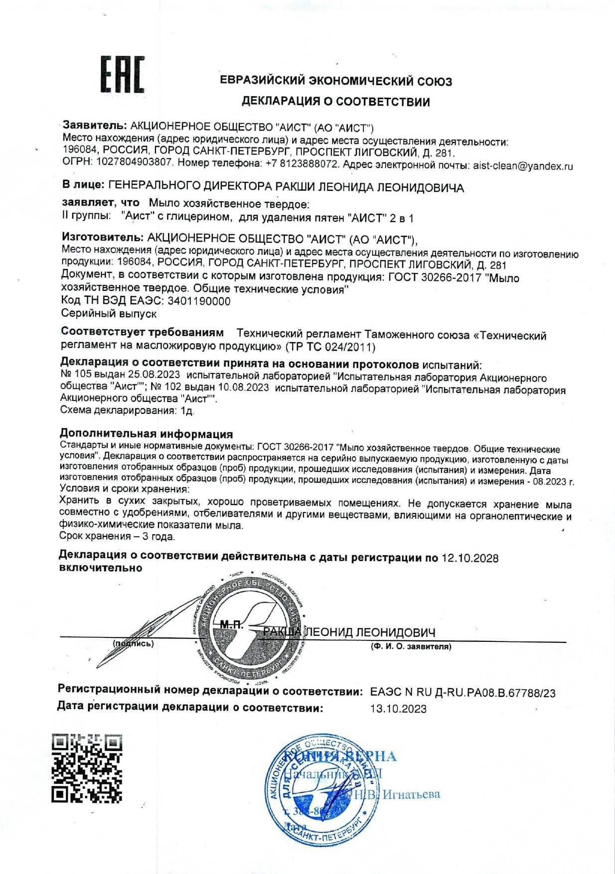 Мыло хозяйственное 72%, 200 г, (Аист) "Классическое", в упаковке, 4304010046