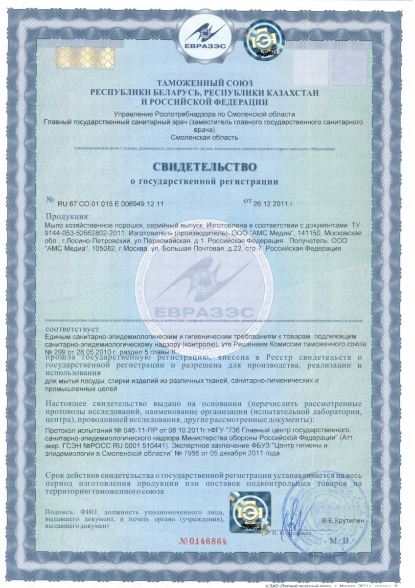 Предназначено для стирки одежды, белья в автоматических стиральных машинах и вручную. Обладает высокой моющей и обезжиривающей способностью, а также отбеливающим, дезинфицирующим, пятновыводным действием.