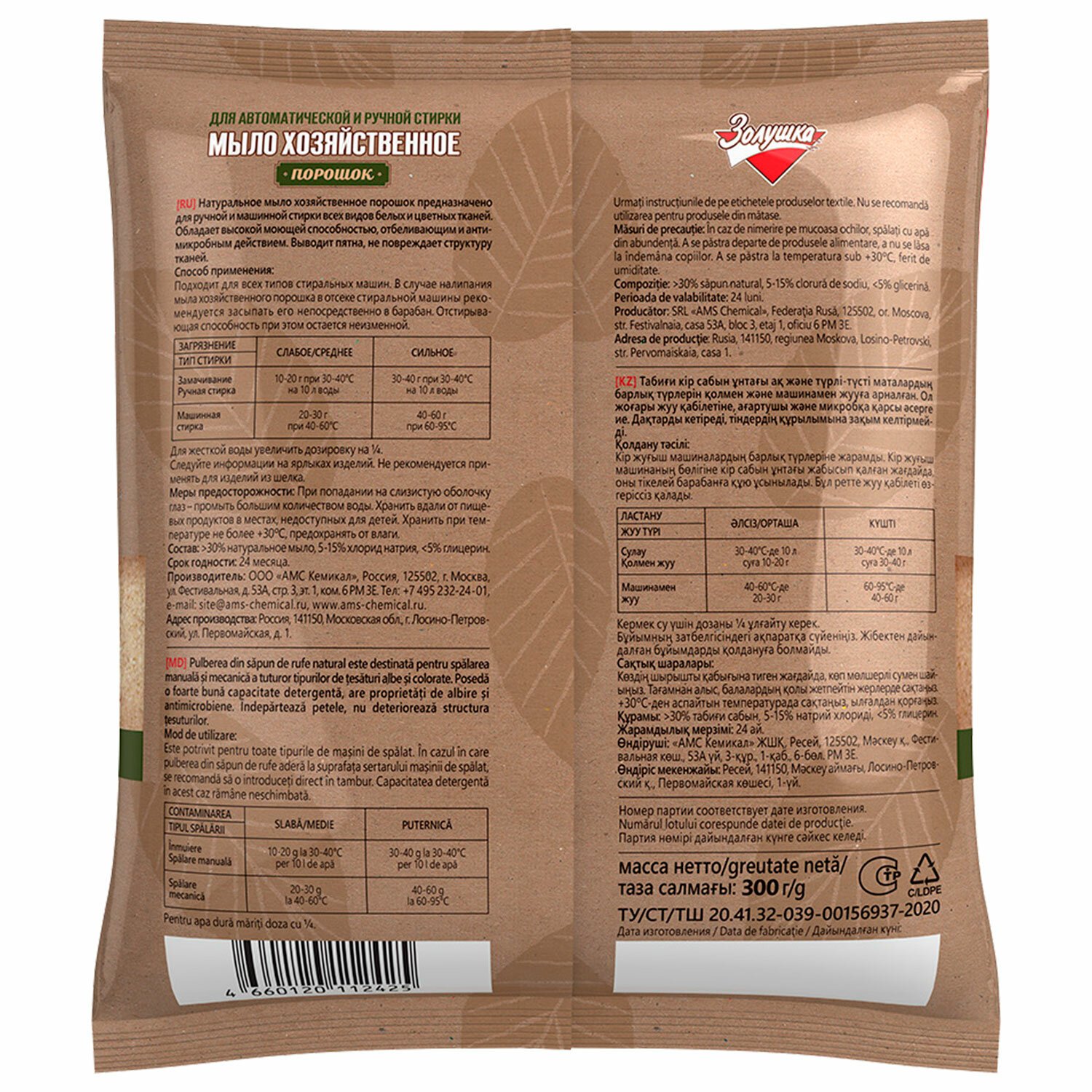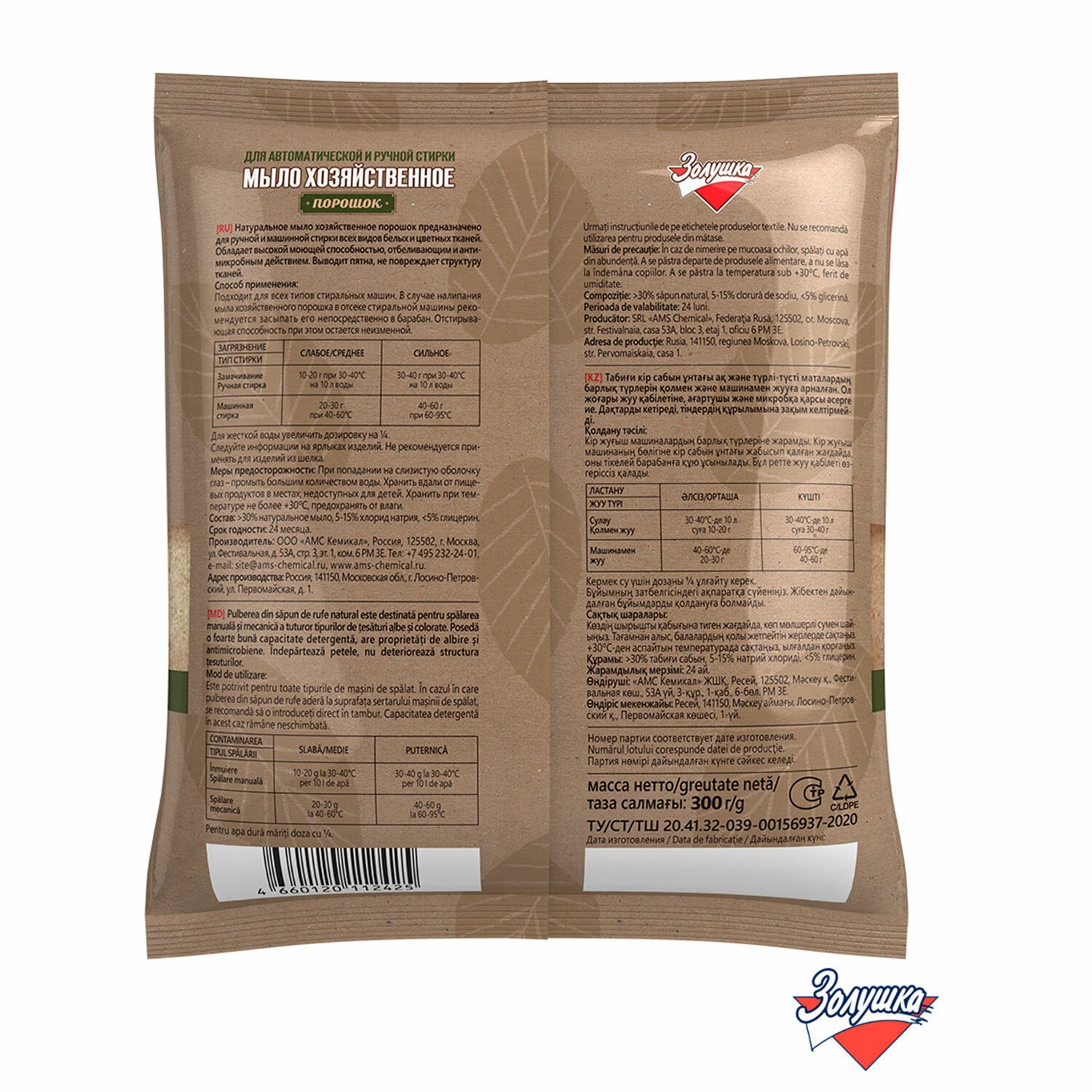 Мыло хозяйственное порошок 300 г, ЗОЛУШКА, для автоматической и ручной стирки, С16-1
