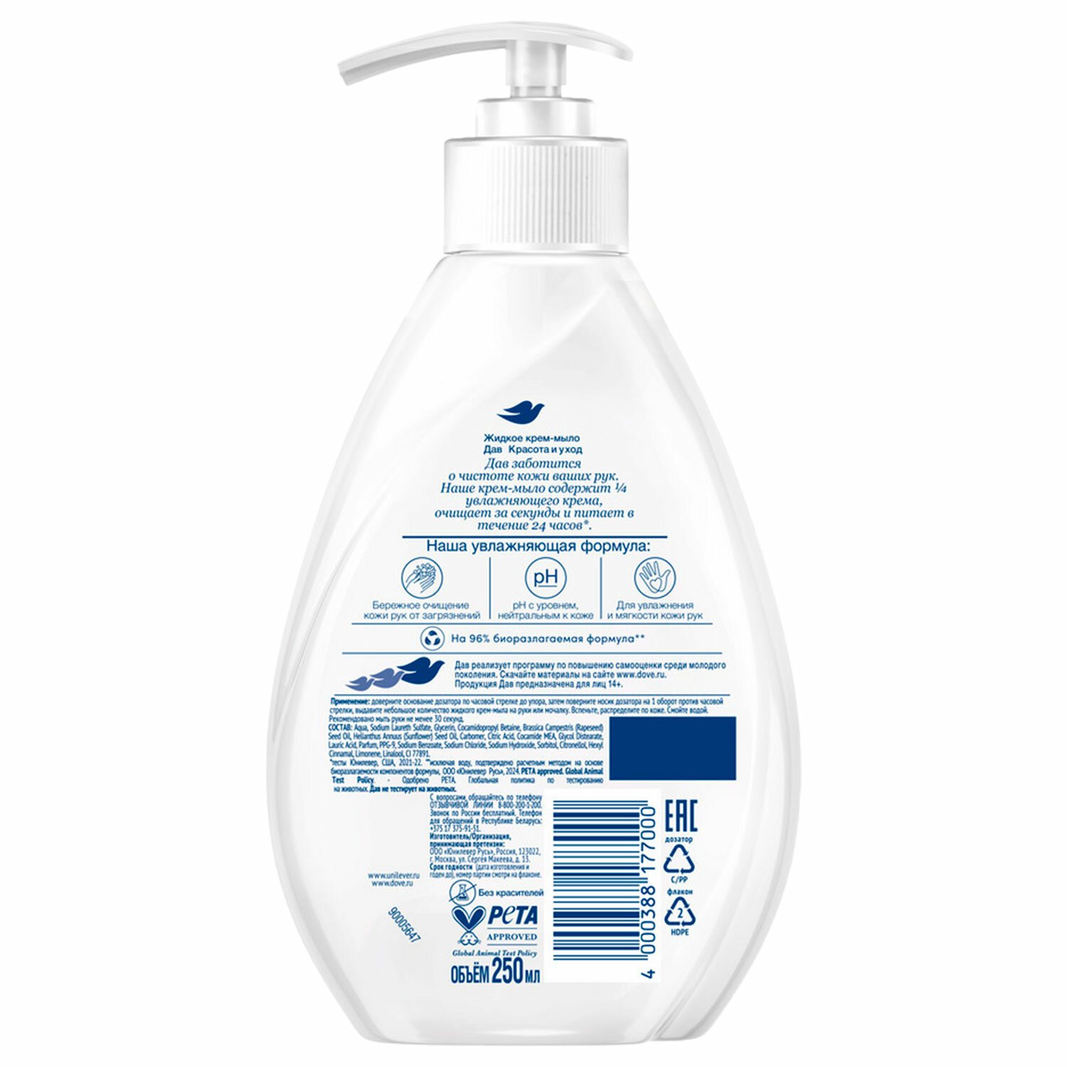 Мыло-крем жидкое 250 мл, DOVE "Красота и уход", дозатор