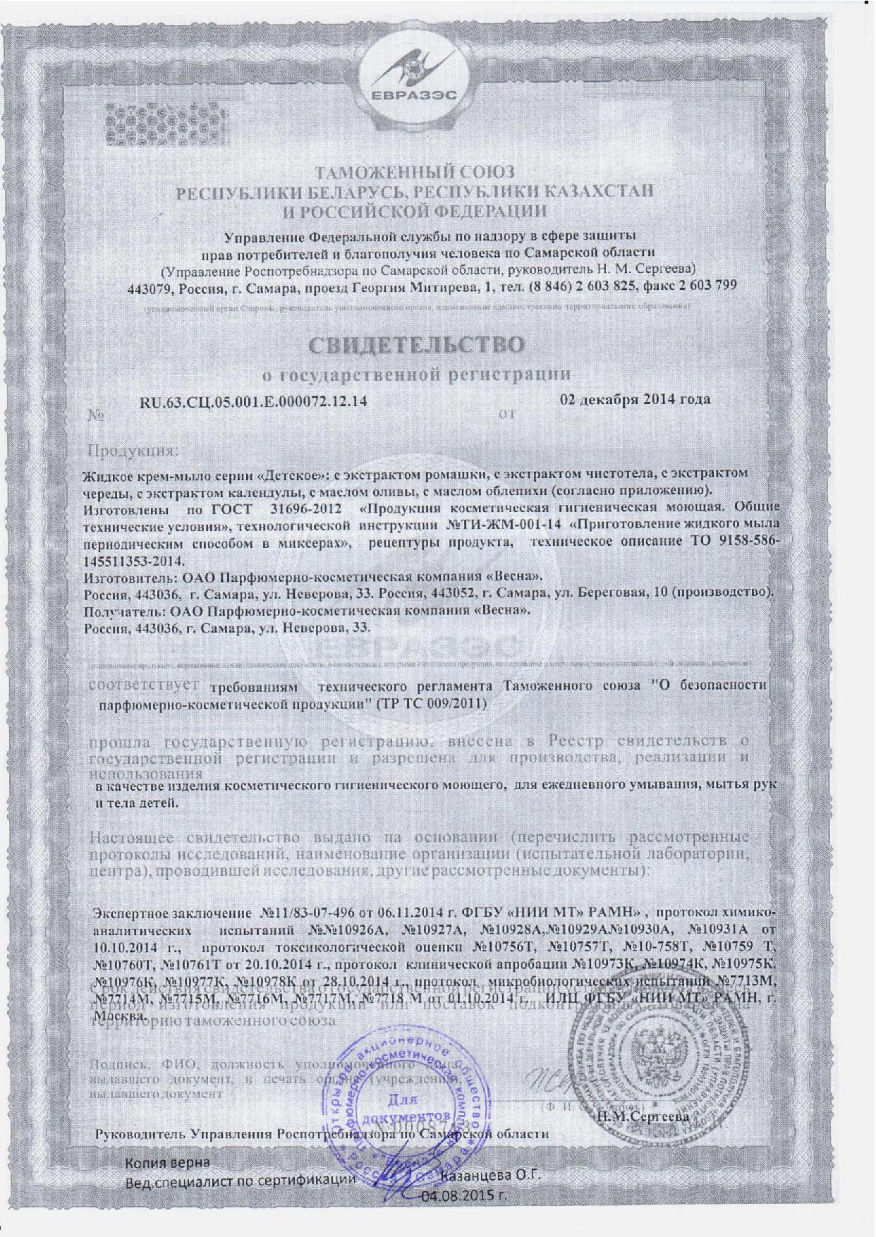 Благодаря содержанию кремовых компонентов,натуральных масел и экстракта ромашки, мыло прекрасно очищает и не сушит нежную детскую кожу и обладает антисептическим и смягчающим действием.