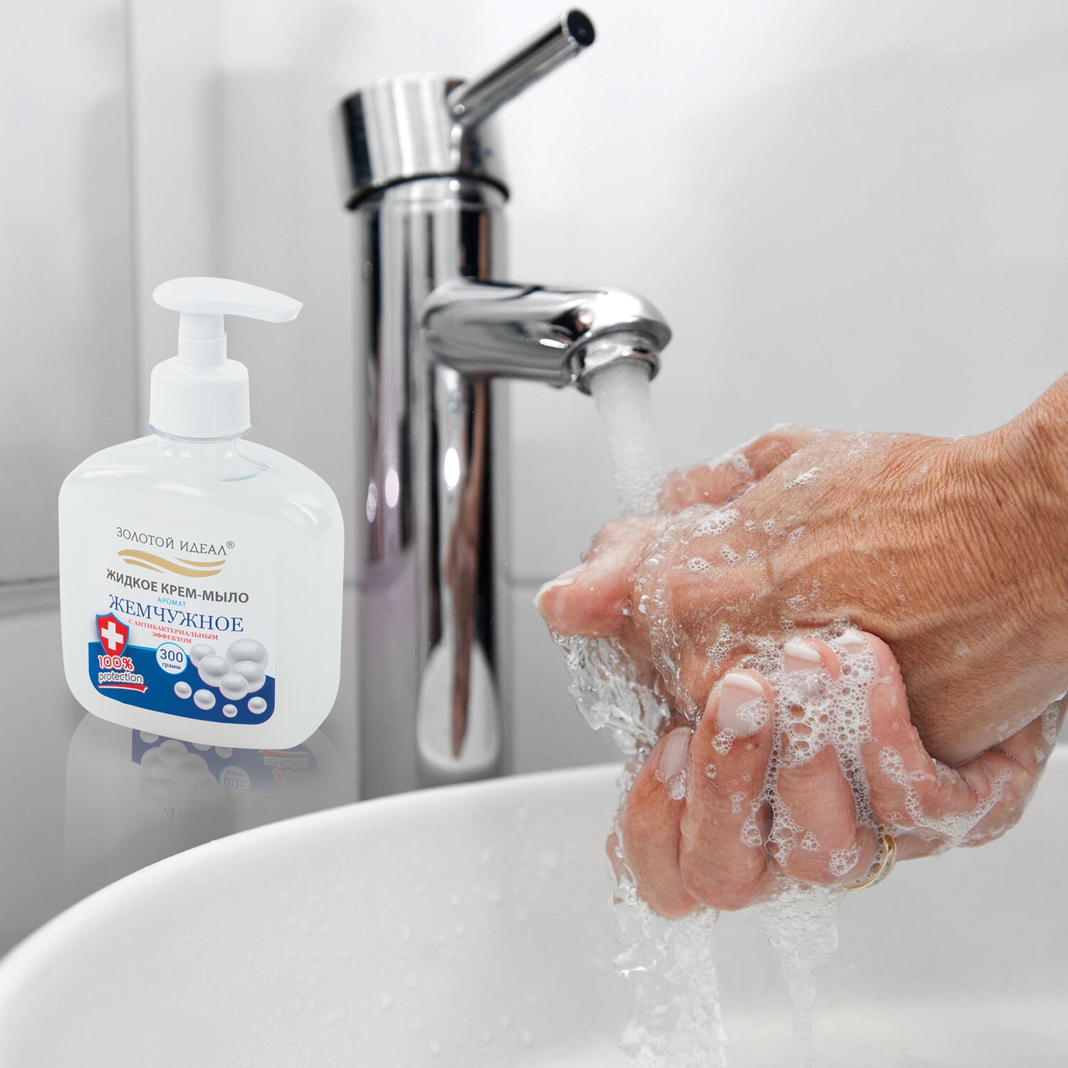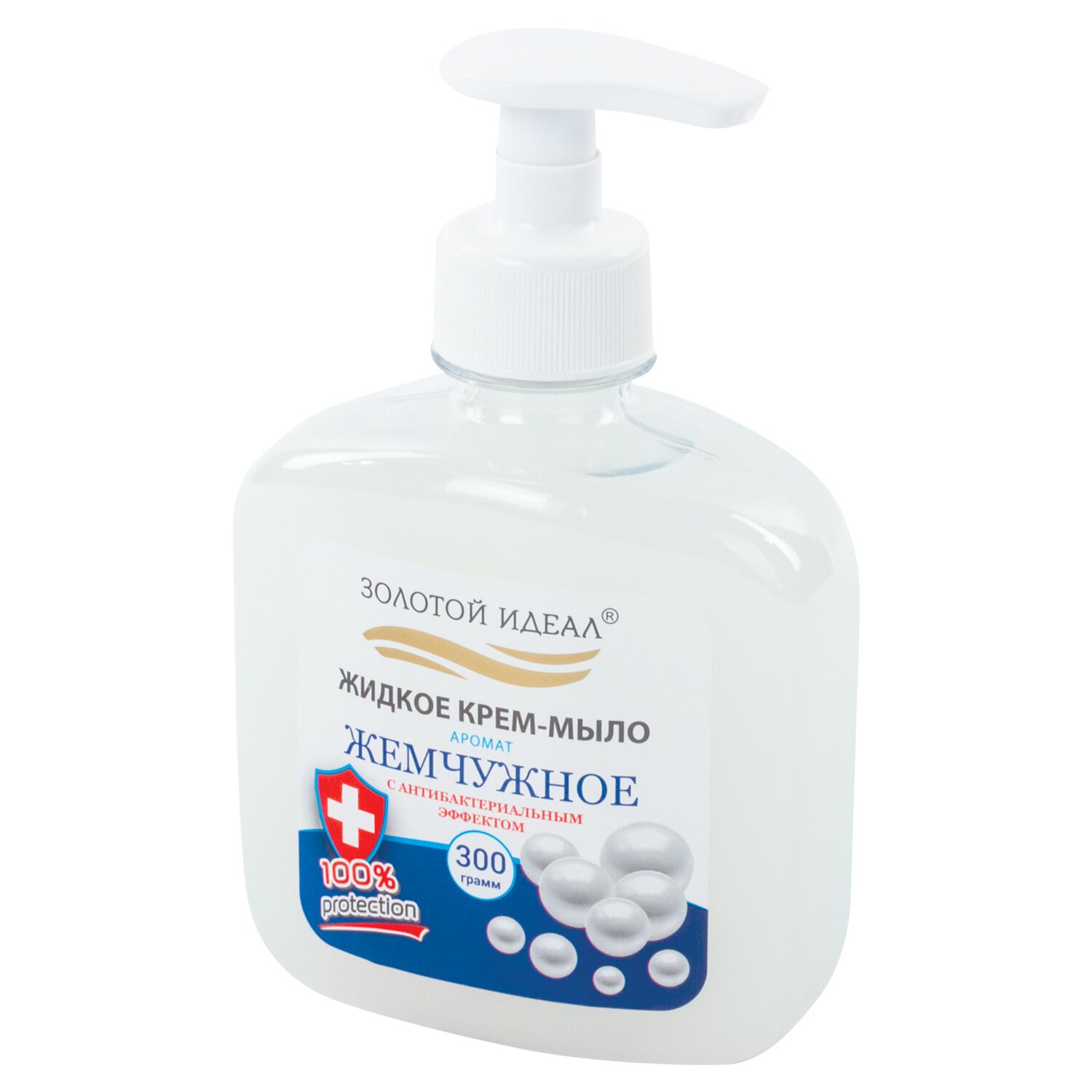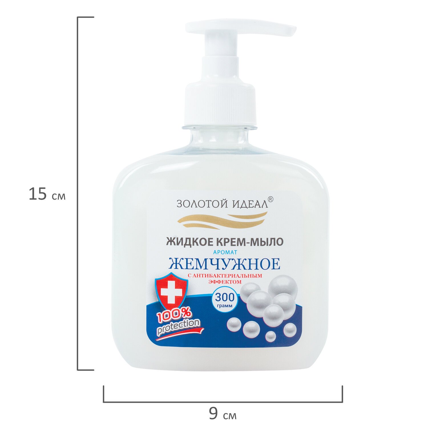 Мыло-крем жидкое 300 г ЗОЛОТОЙ ИДЕАЛ "Жемчужное", с антибактериальным эффектом, дозатор, 606780