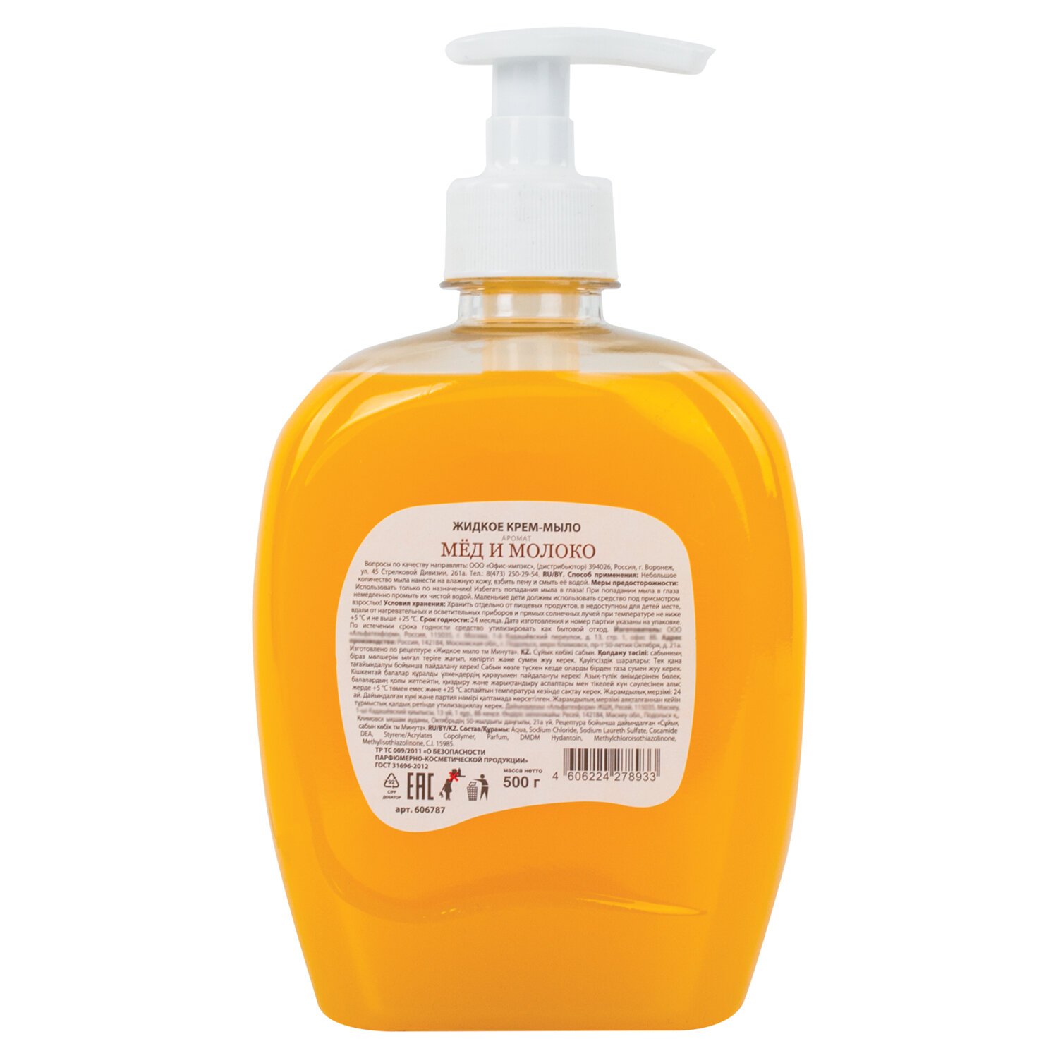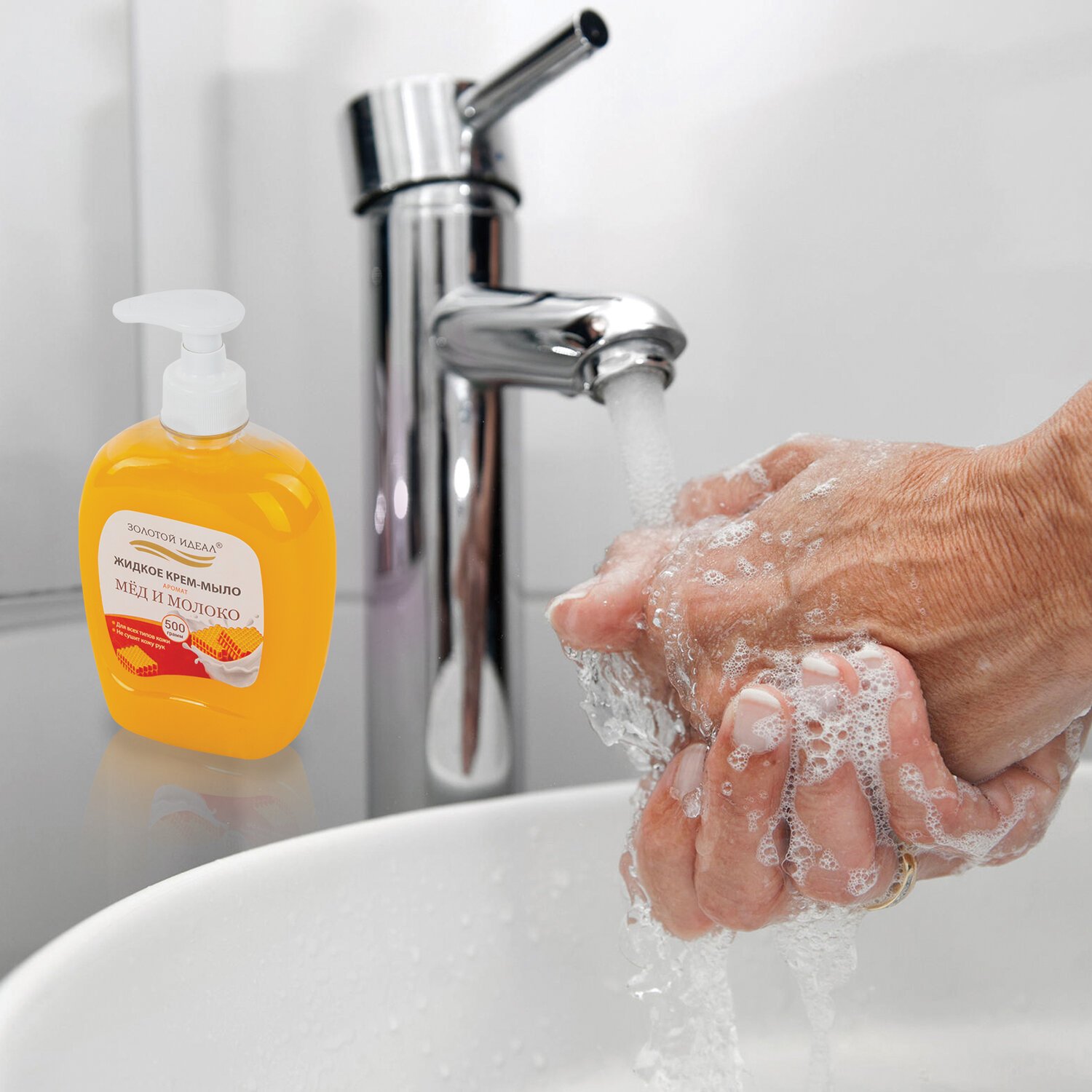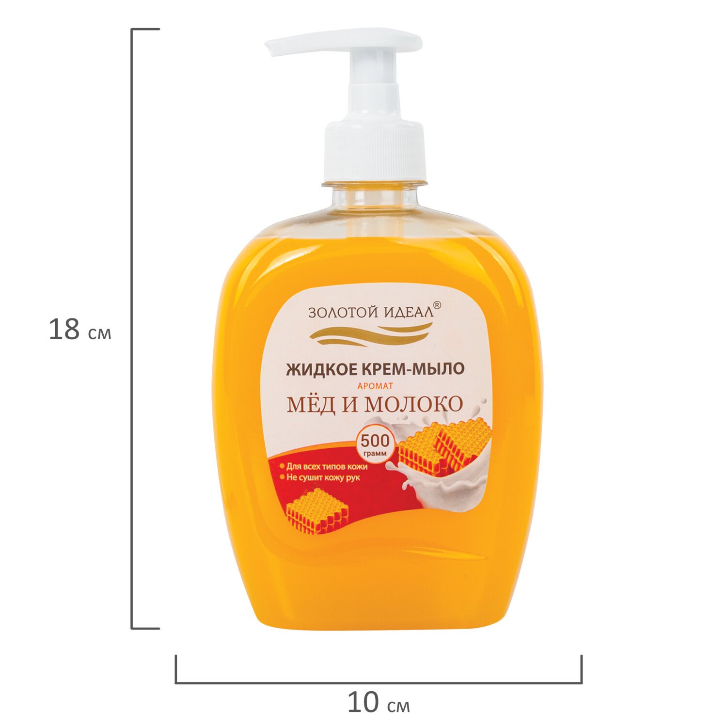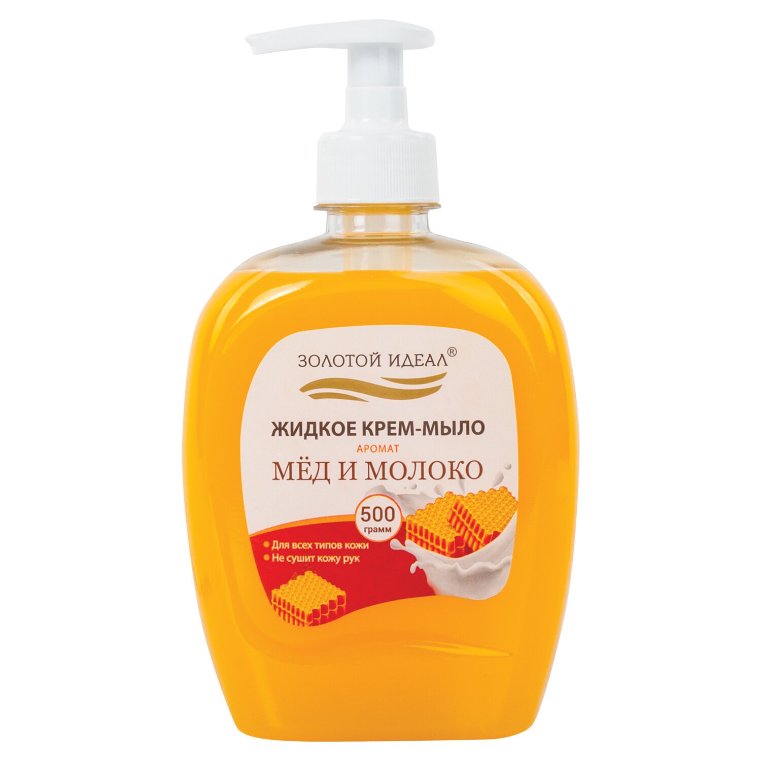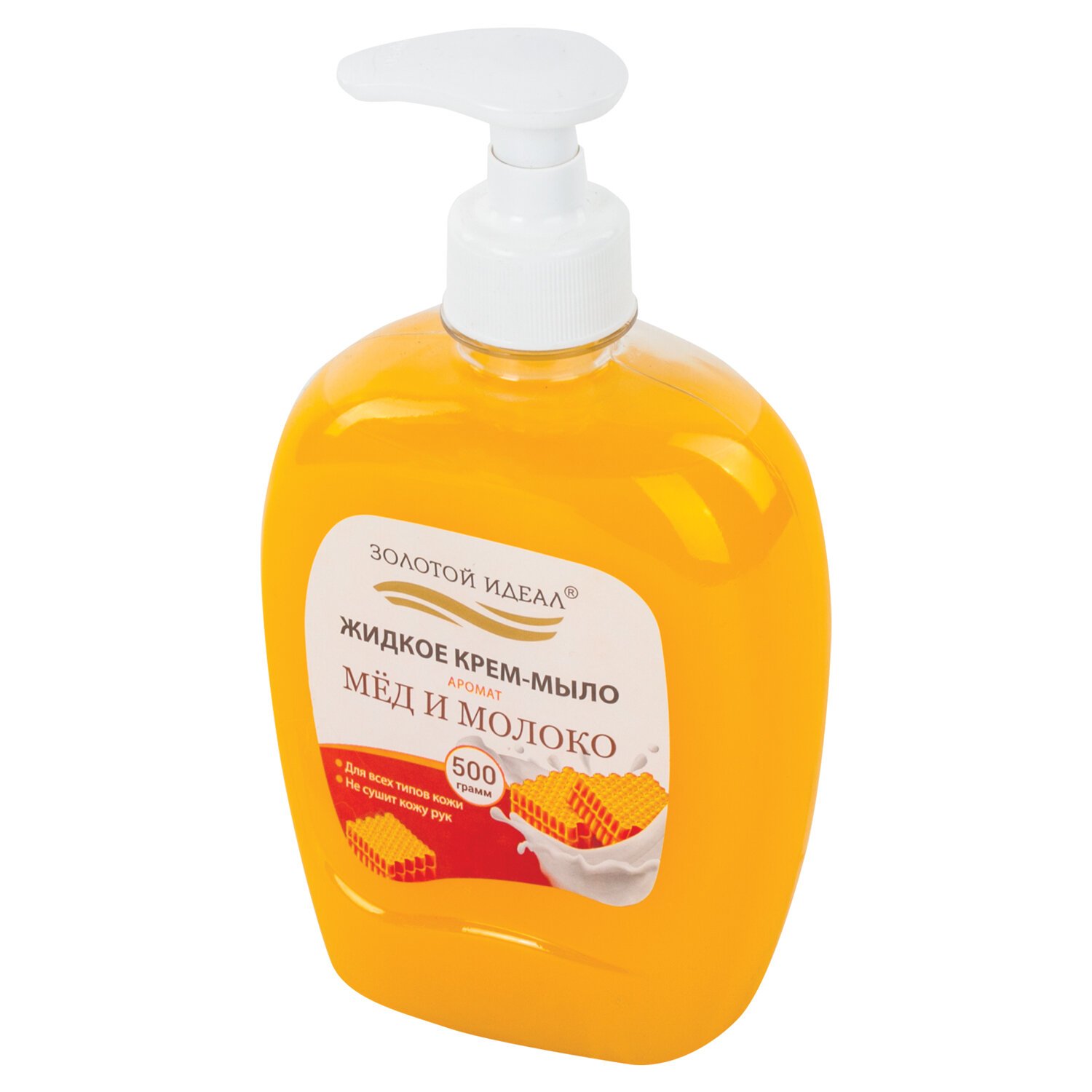 Мыло-крем жидкое 500 г ЗОЛОТОЙ ИДЕАЛ "Мед и молоко", дозатор, 606787