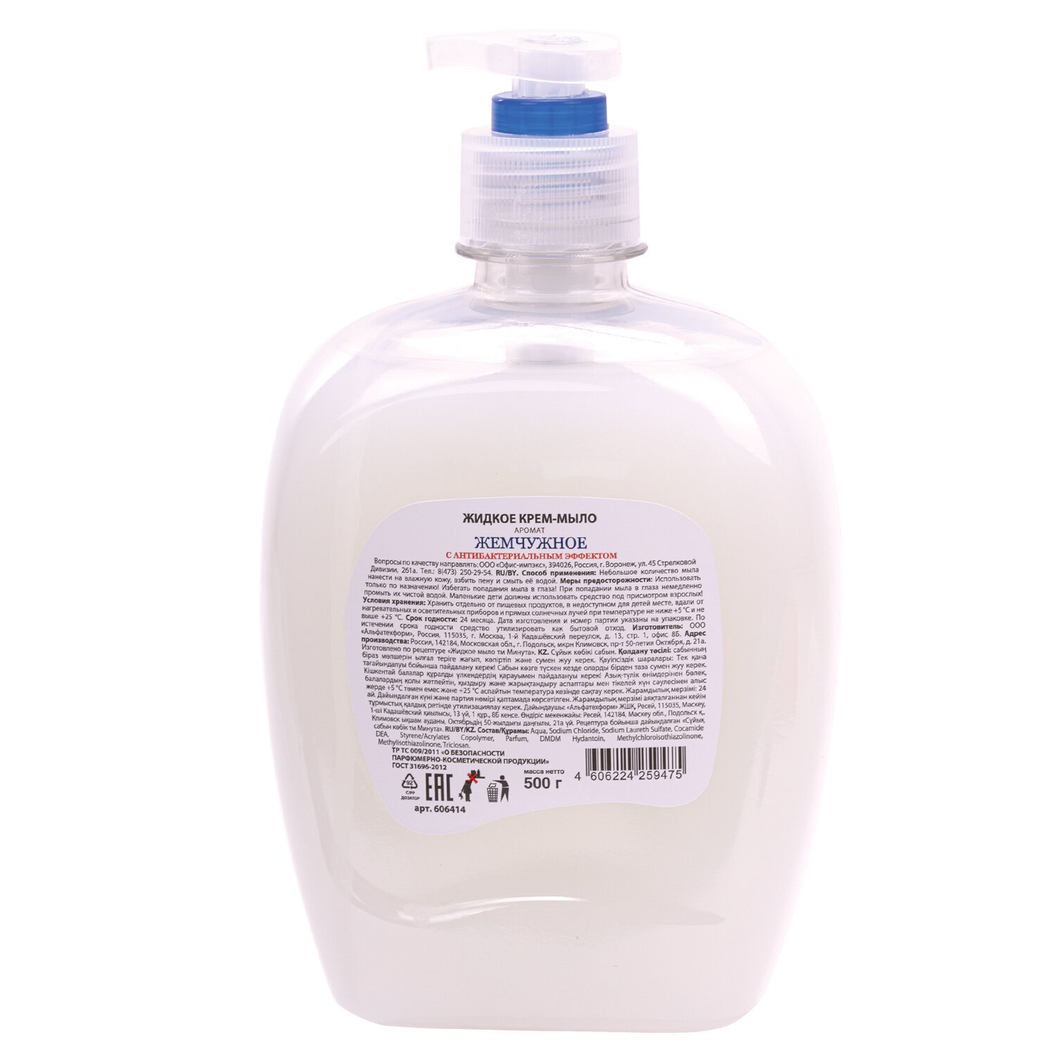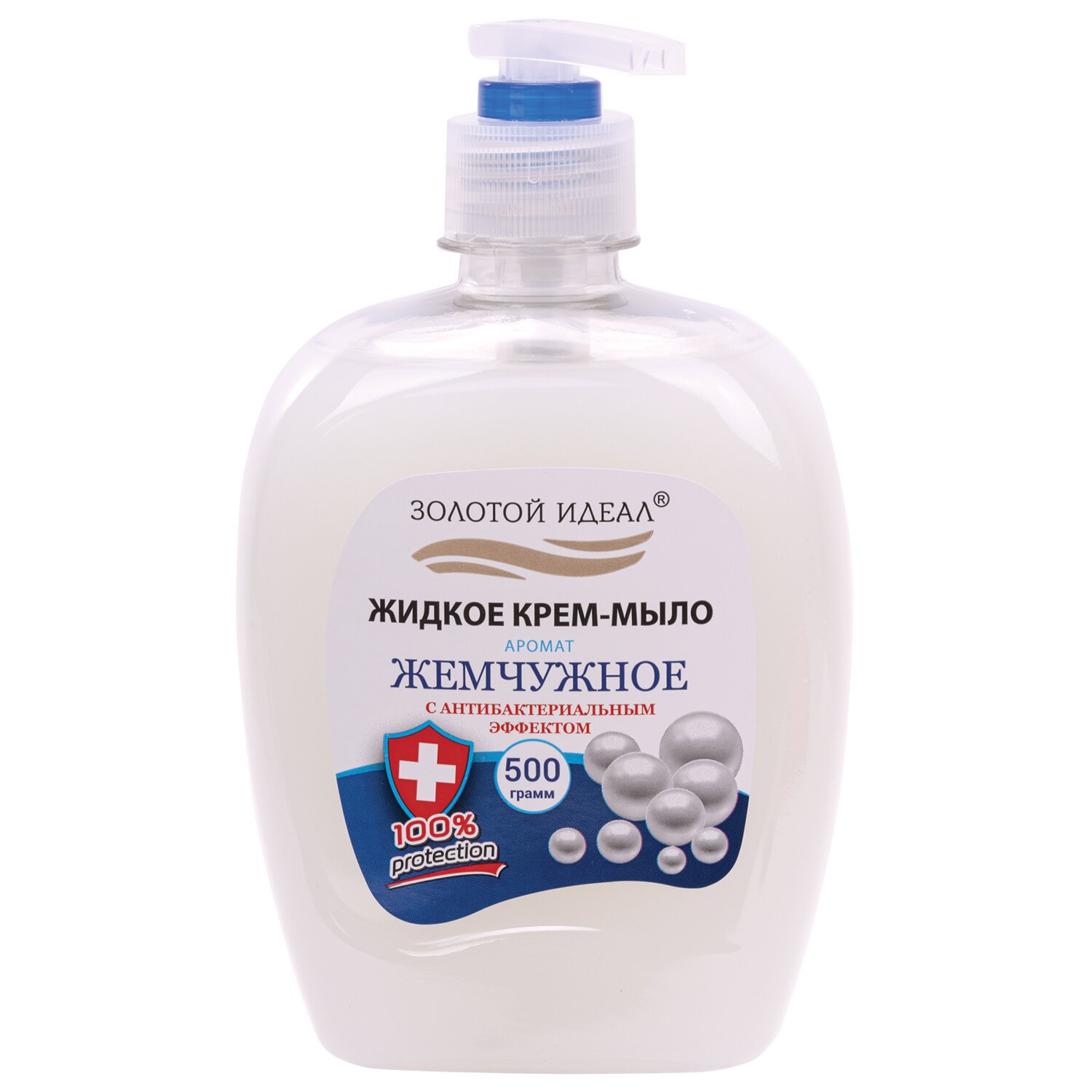 Мыло-крем жидкое 500 г ЗОЛОТОЙ ИДЕАЛ "Жемчужное", с антибактериальным эффектом, дозатор, 606414