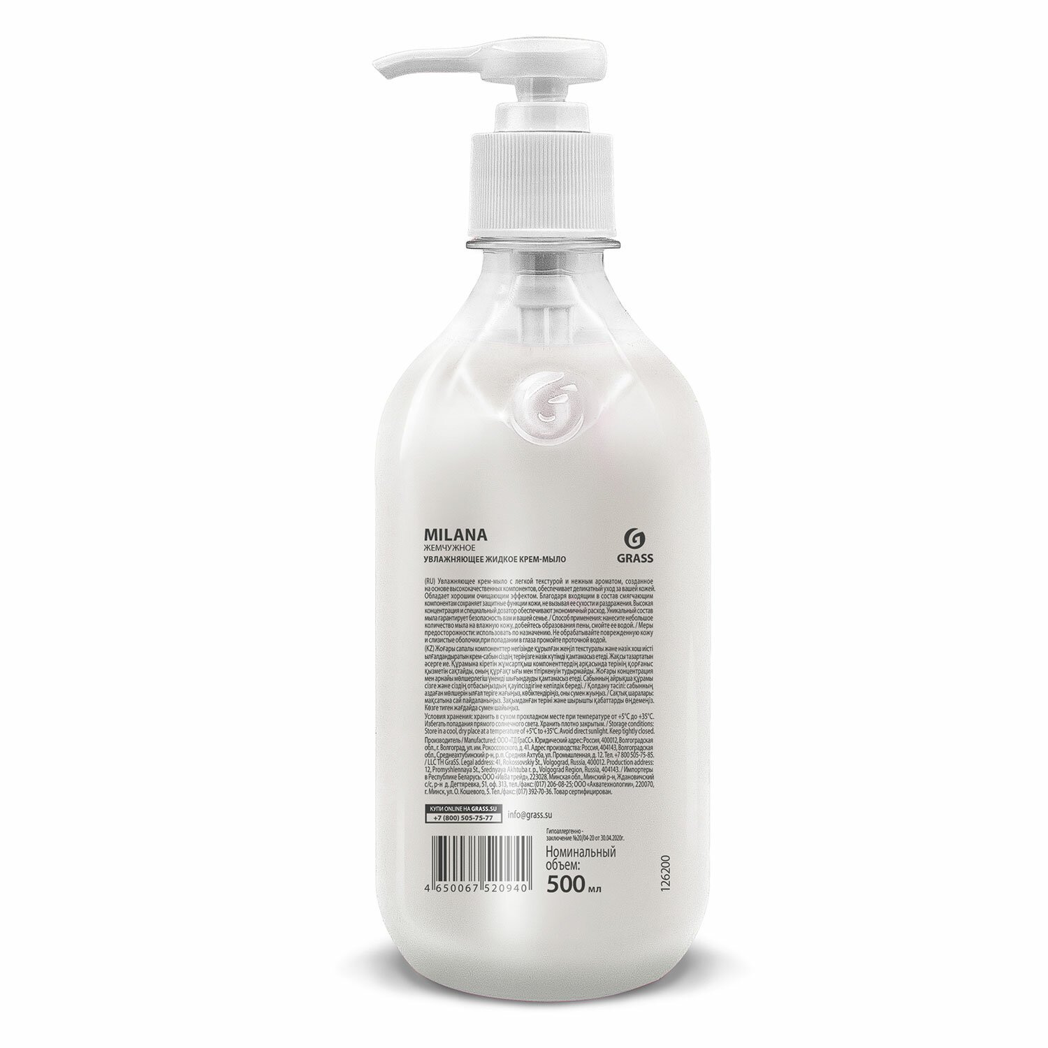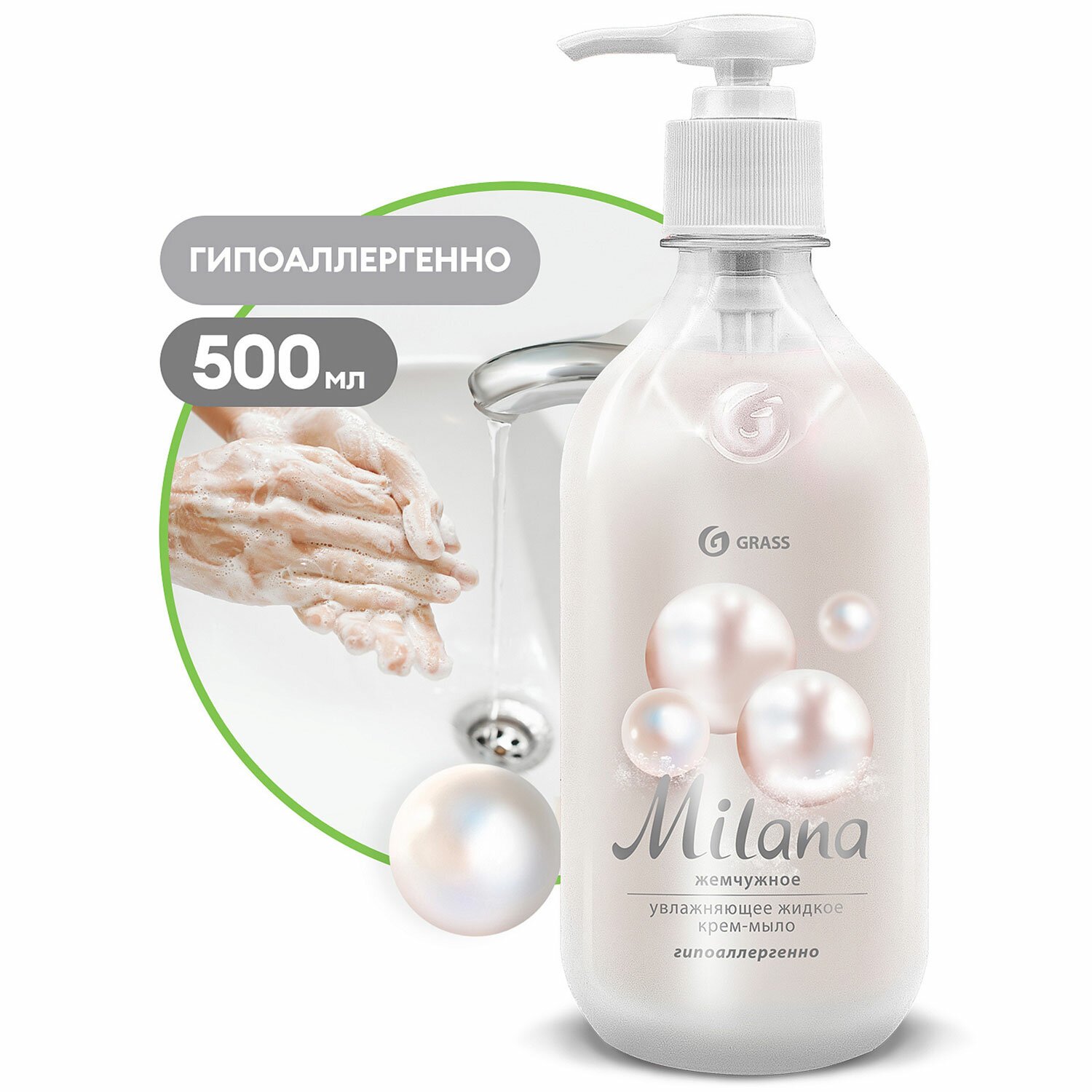 Мыло-крем жидкое 500 мл, GRASS MILANA "Жемчужное", дозатор, 126200
