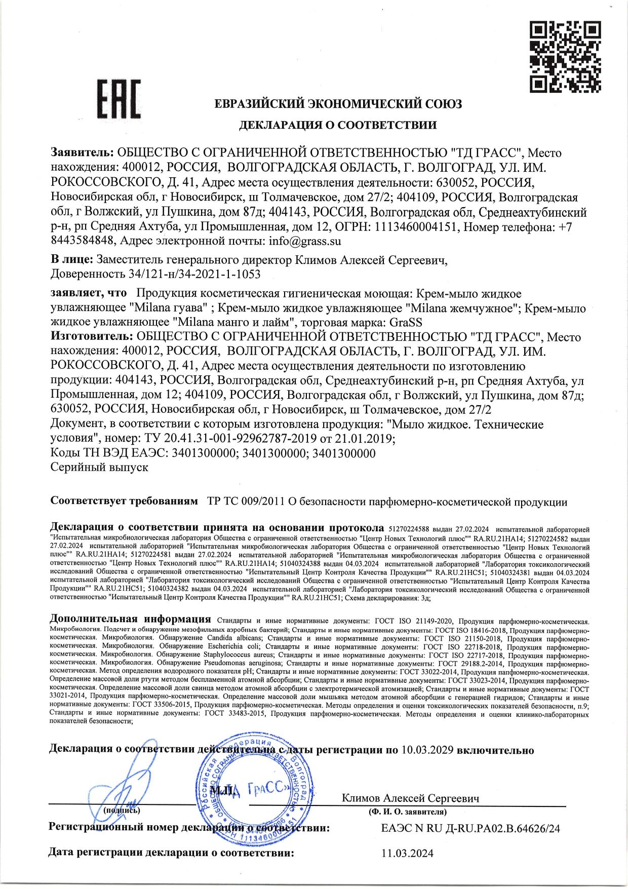 Мыло-крем жидкое 5 л GRASS MILANA "Жемчужное", 126205