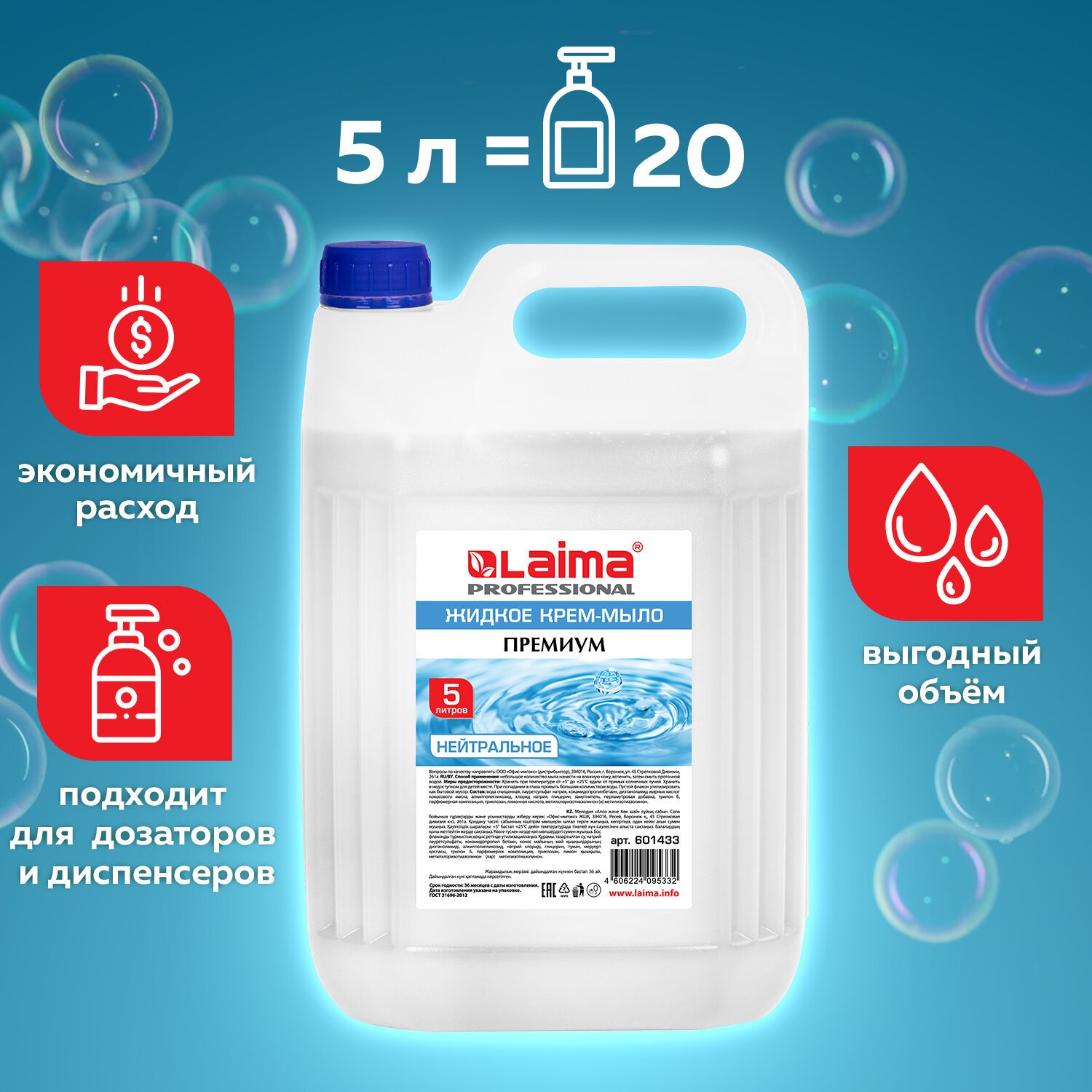 Жидкое крем-мыло ЛАЙМА Professional "Нейтральное" идеально подходит для использования в офисах, отелях, ресторанах и других общественных местах.