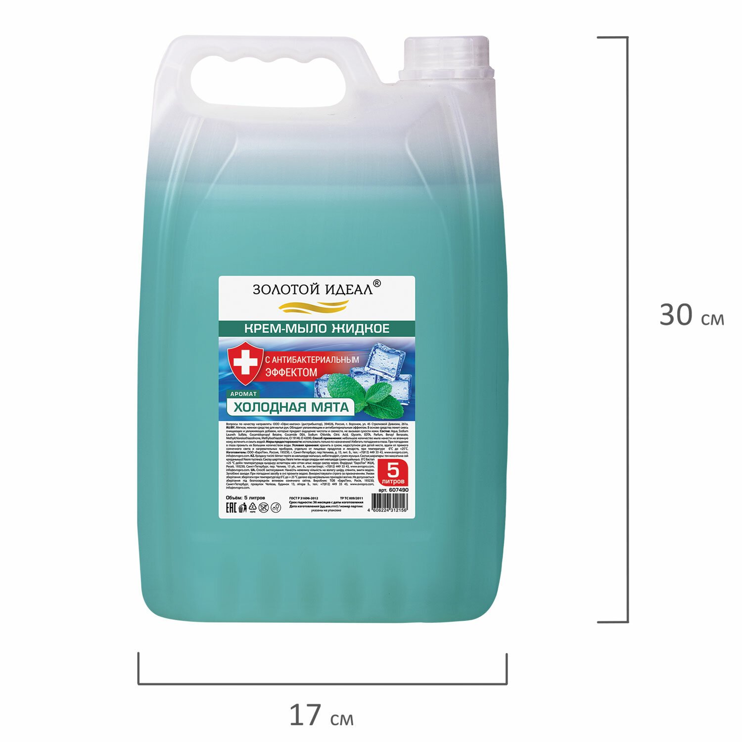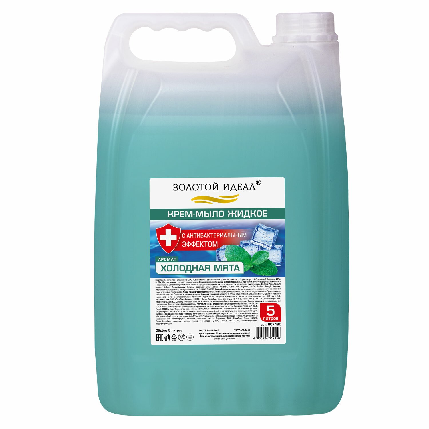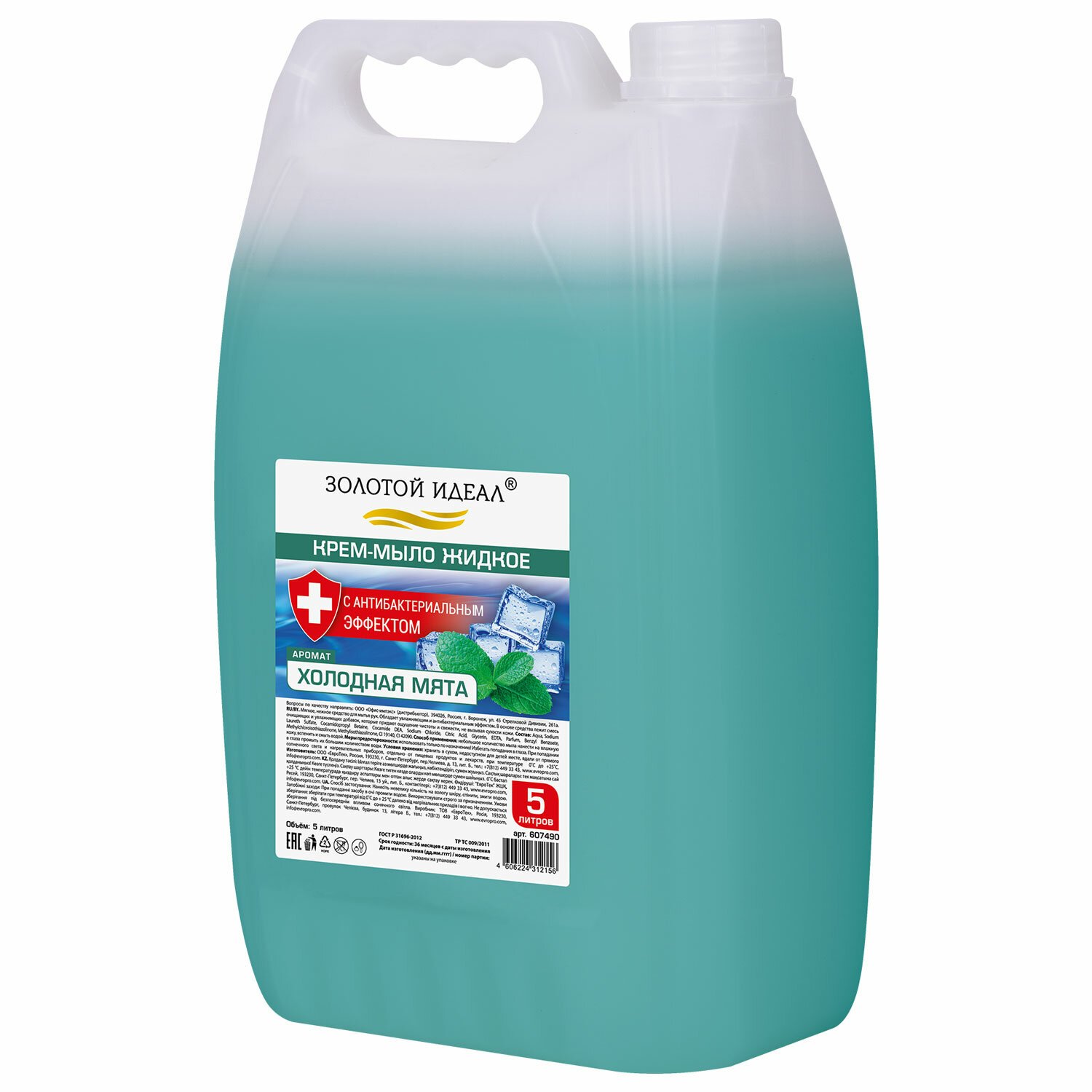 Мыло-крем жидкое с АНТИБАКТЕРИАЛЬНЫМ ЭФФЕКТОМ, 5 л, ЗОЛОТОЙ ИДЕАЛ "Холодная мята", 607490