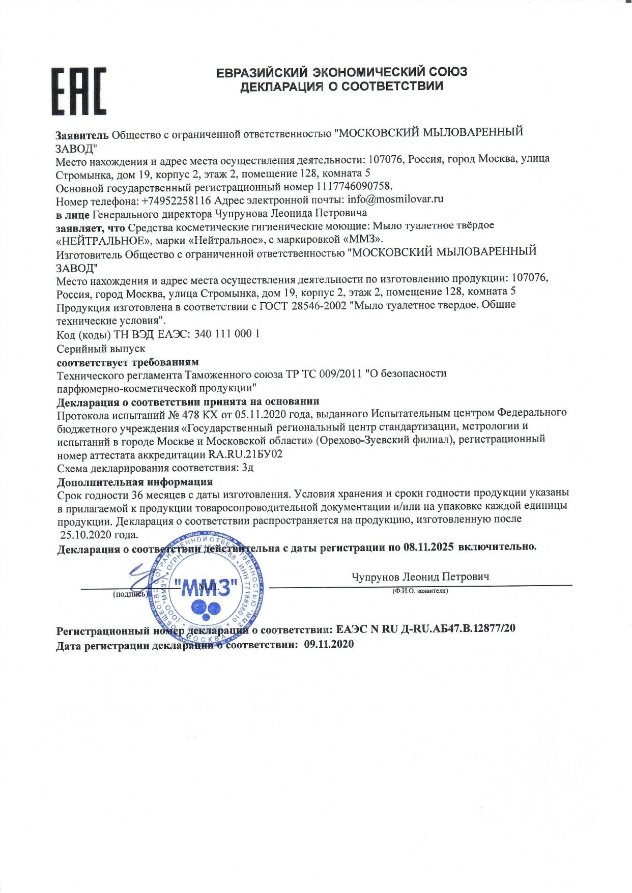 Мыло туалетное 100 г ММЗ НЕЙТРАЛЬНОЕ (марка Н)