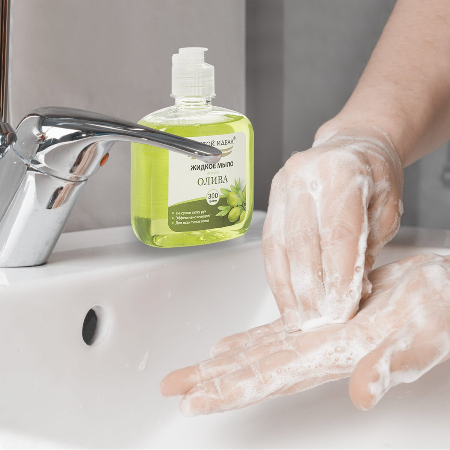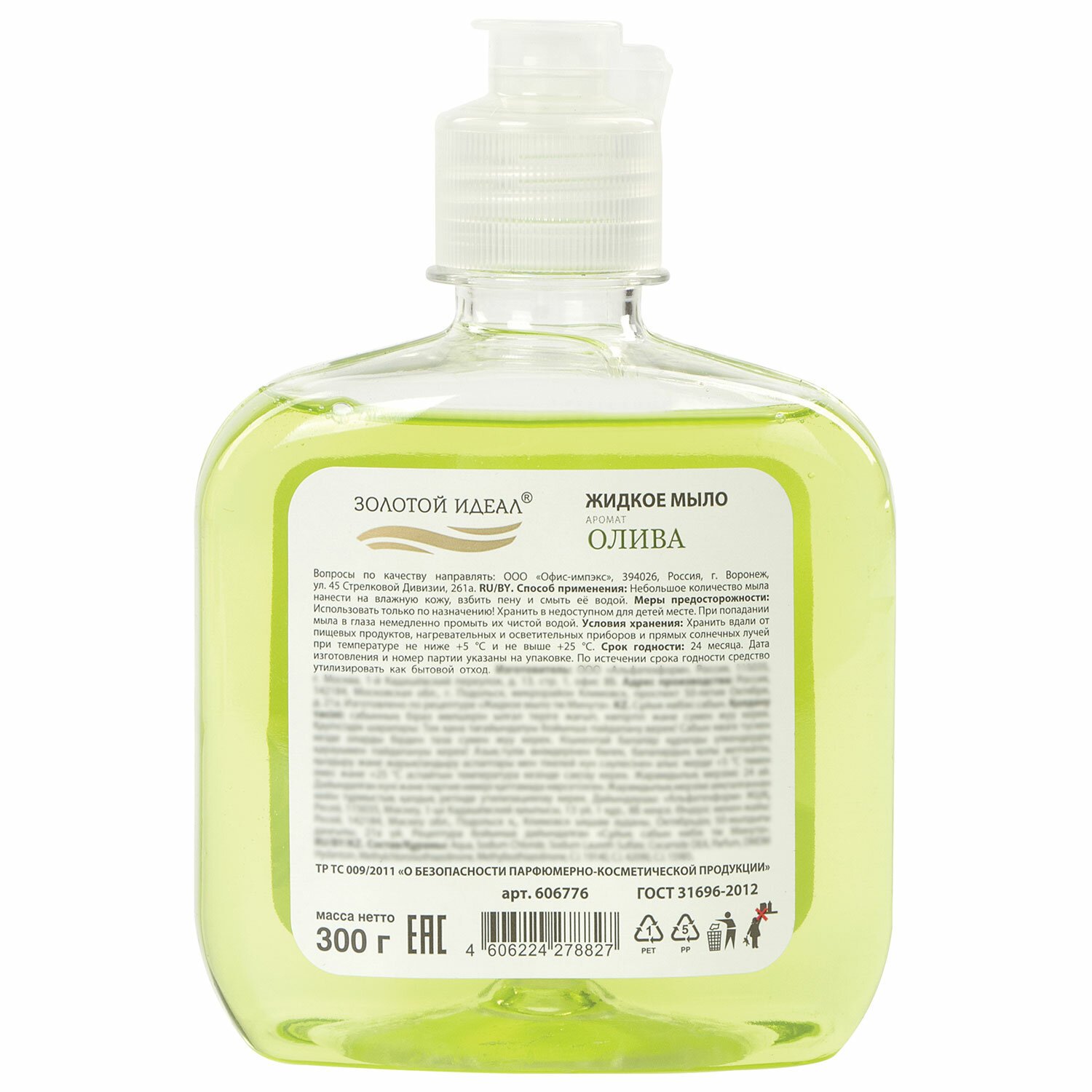 Мыло жидкое 300 г ЗОЛОТОЙ ИДЕАЛ "Олива", флип топ, 606776