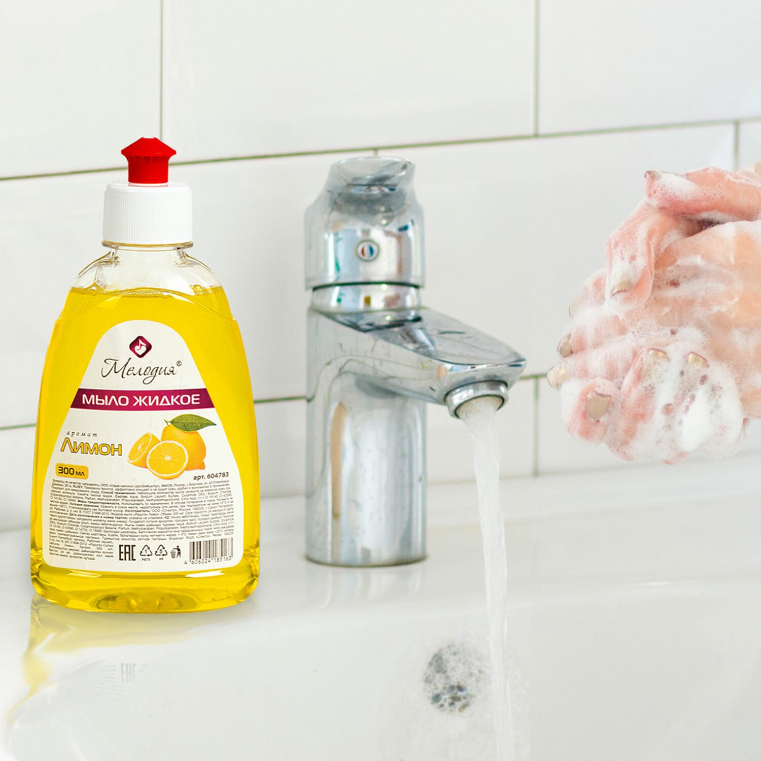 Мыло жидкое 300 мл, МЕЛОДИЯ "Лимон", пуш-пул, 604783