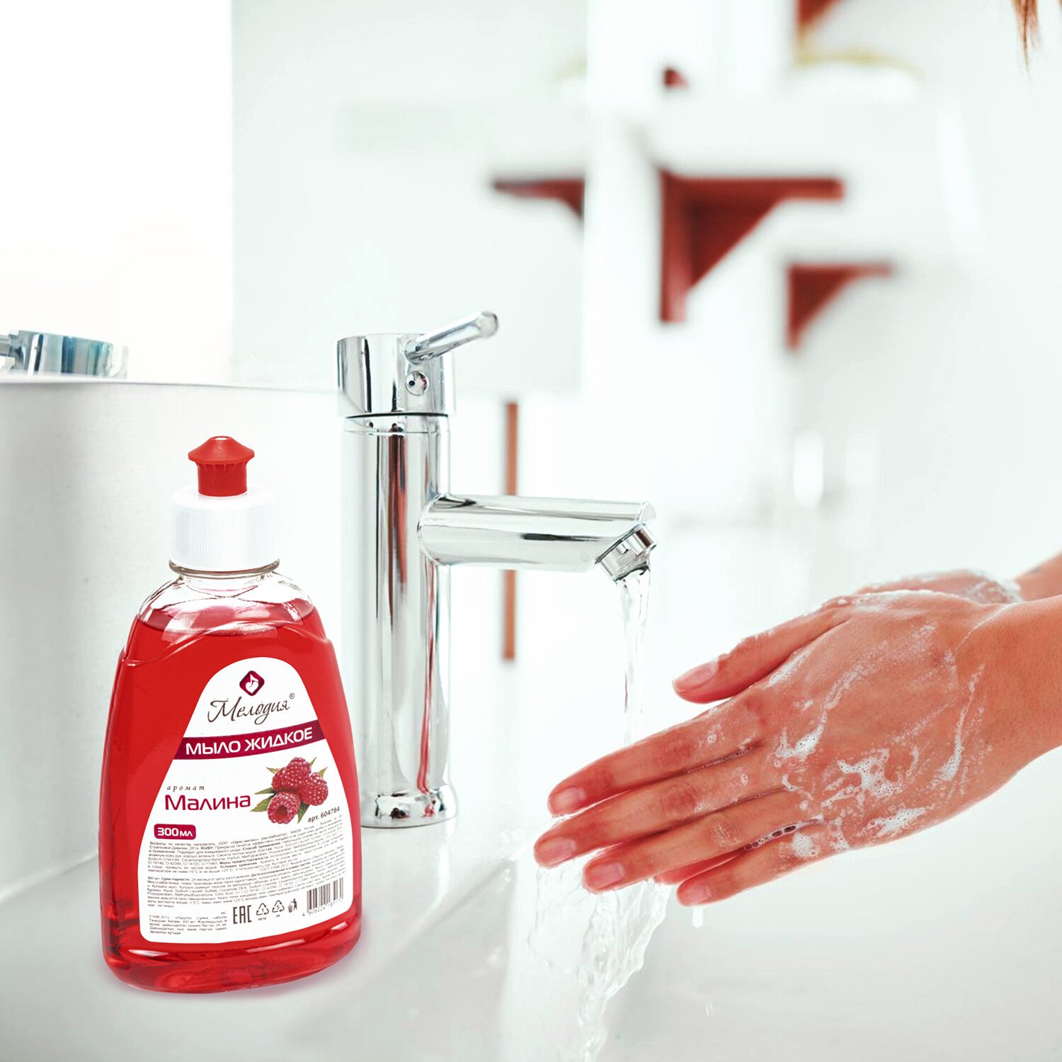 Мыло жидкое 300 мл, МЕЛОДИЯ "Малина", пуш-пул, 604784