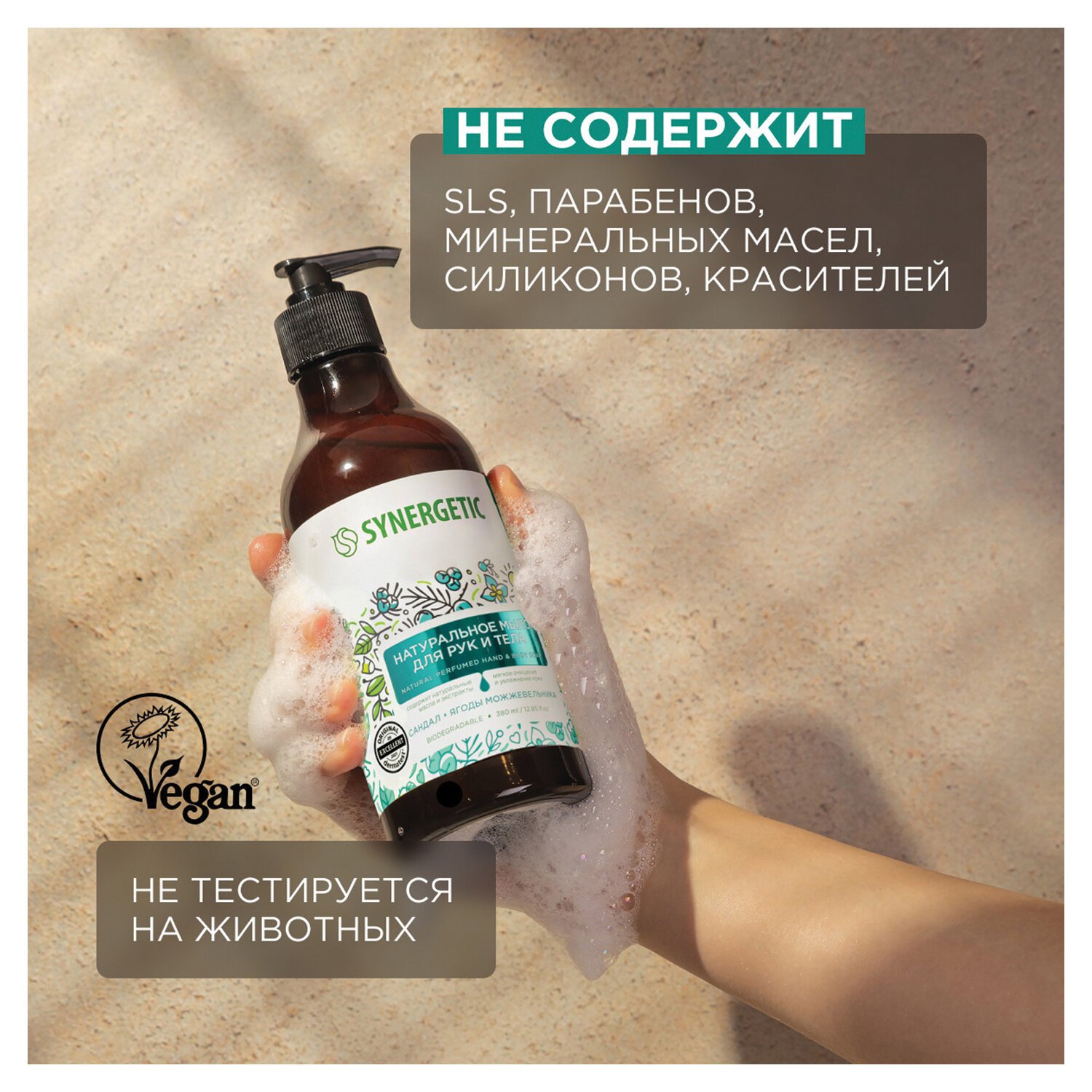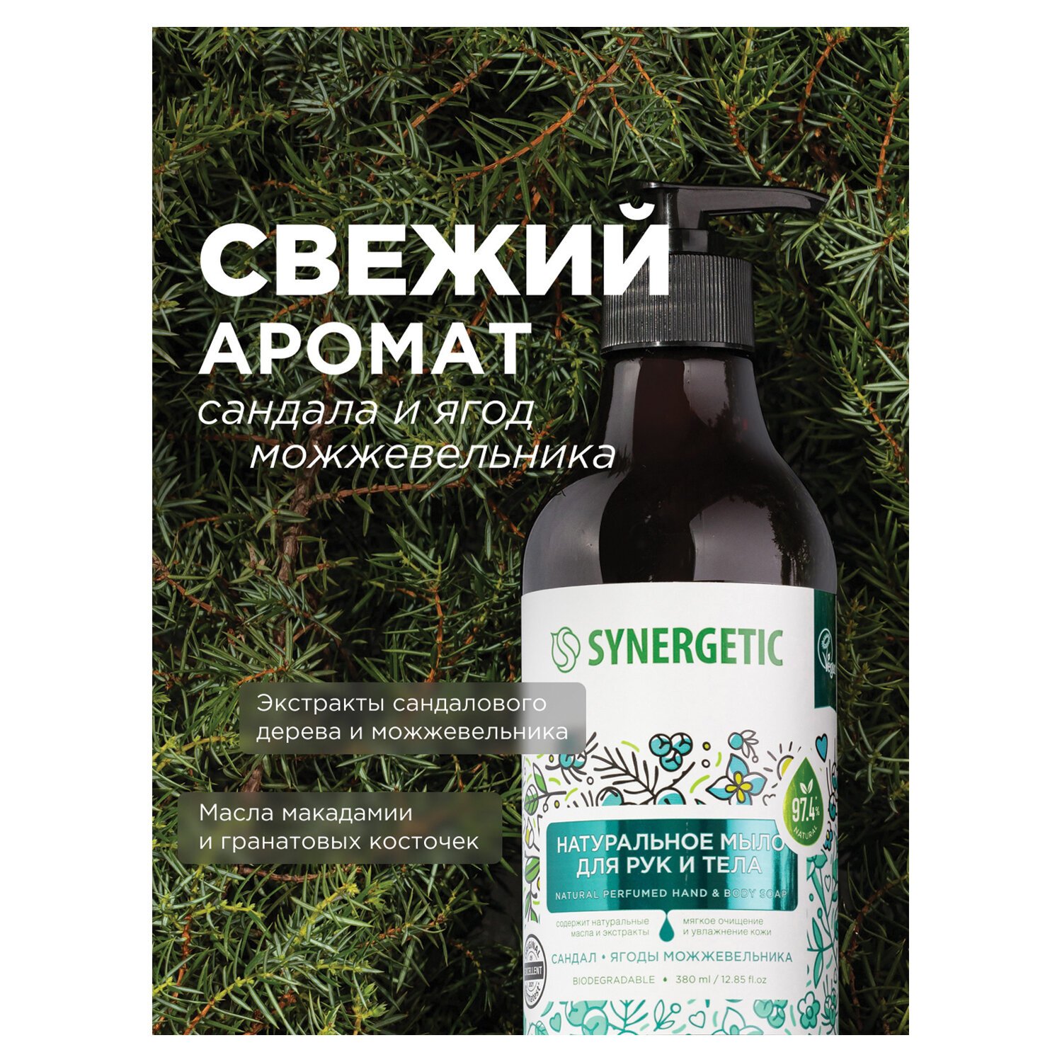 Мыло жидкое 380 мл SYNERGETIC "Сандал и ягоды можжевельника", биоразлагаемое, дозатор, 105003