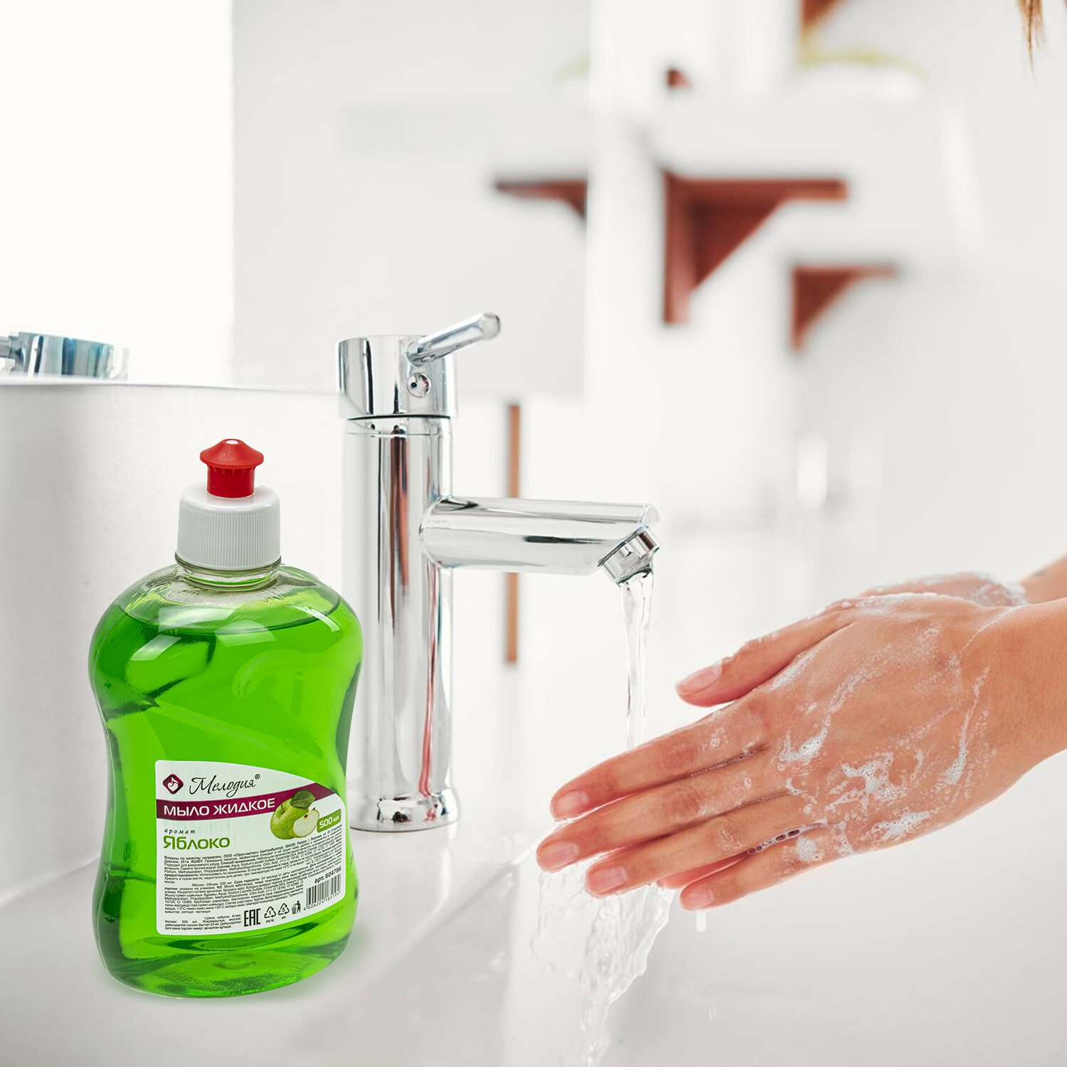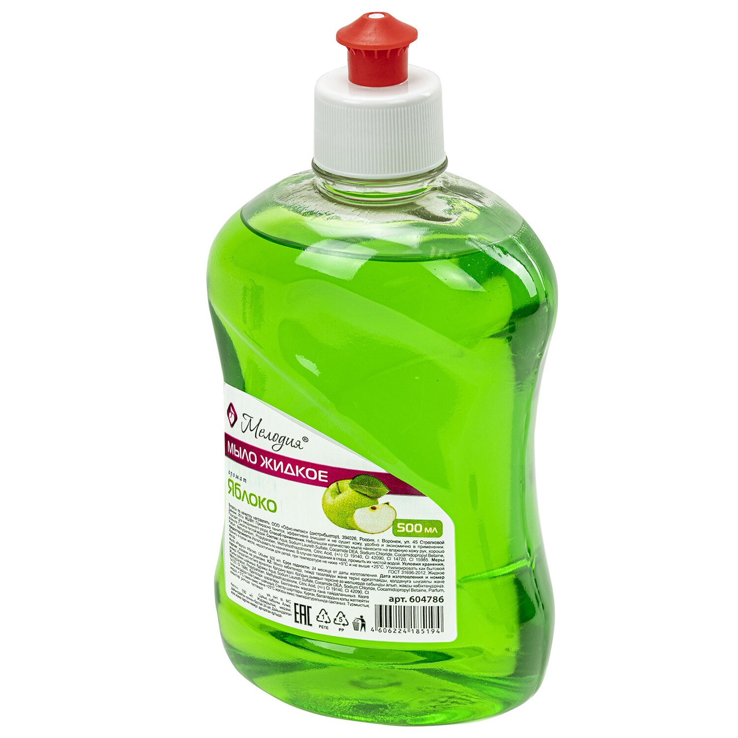 Мыло жидкое 500 мл, МЕЛОДИЯ "Яблоко", пуш-пул, 604786