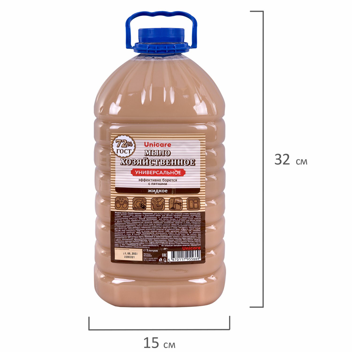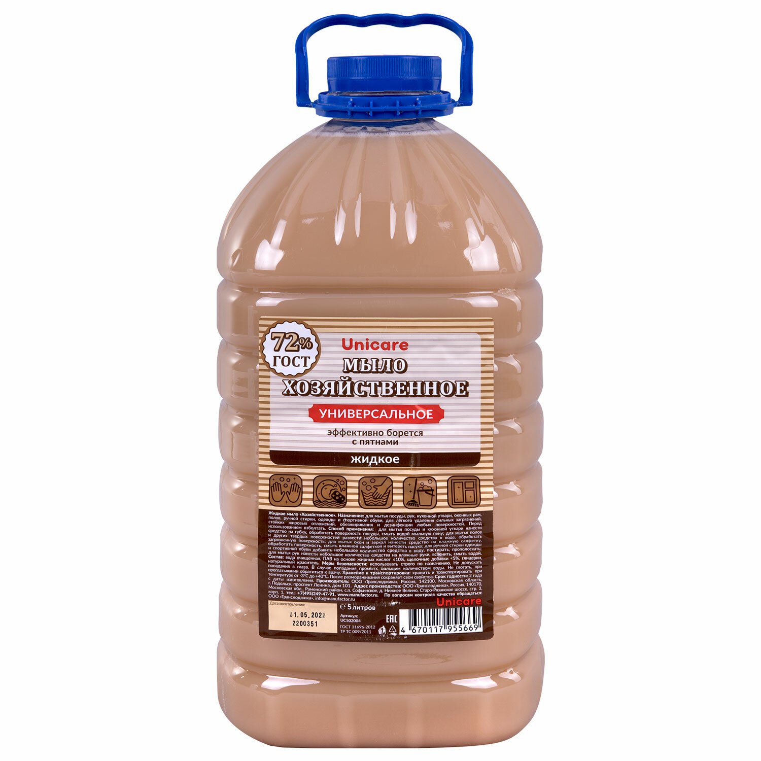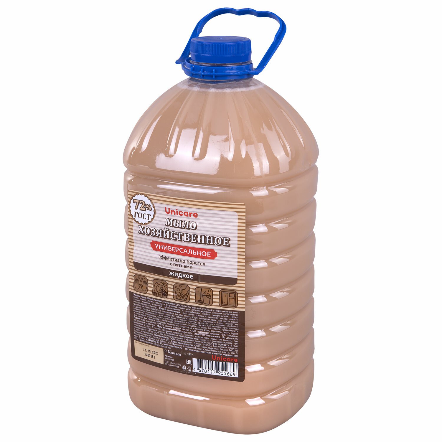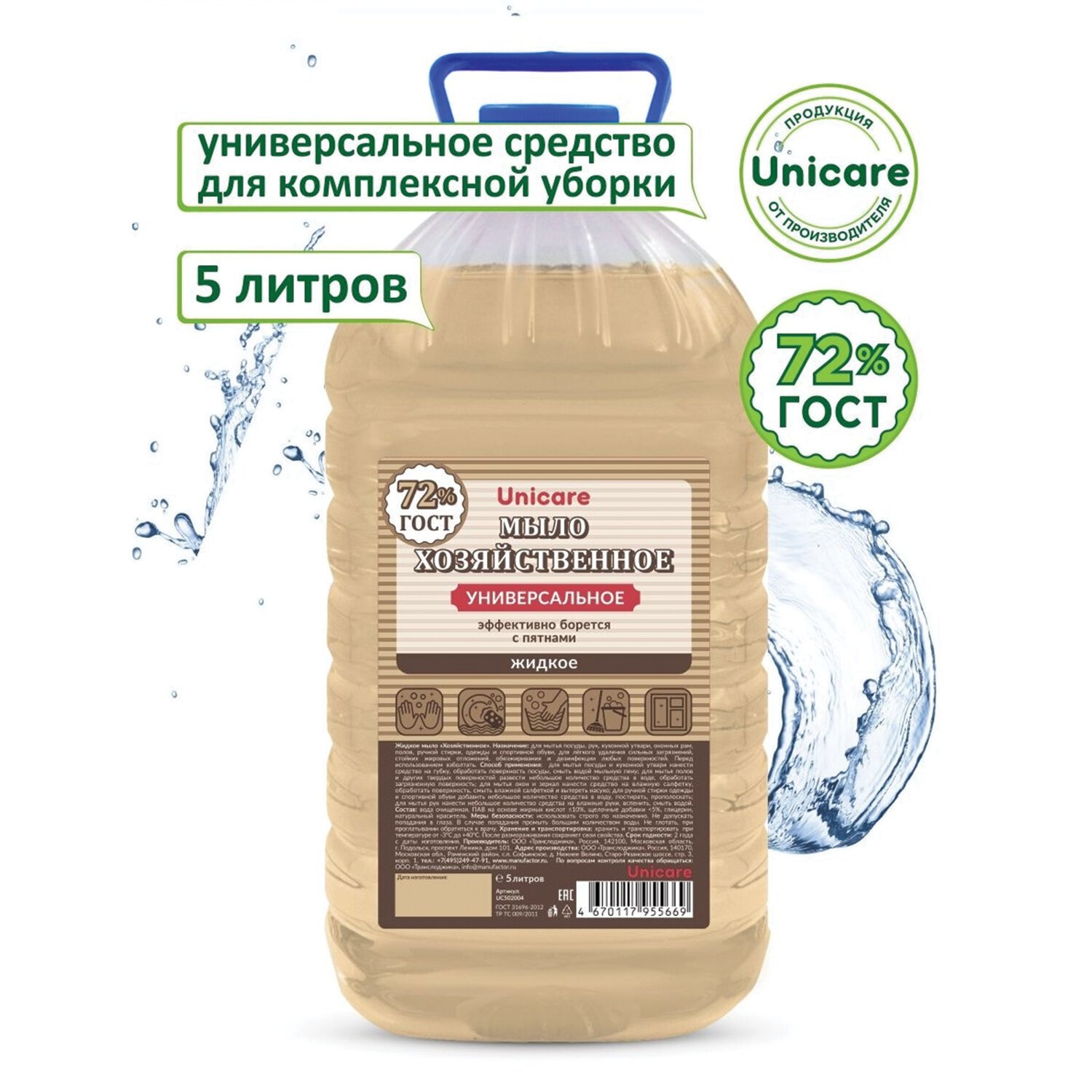 Мыло жидкое 5 л UNICARE "Хозяйственное", ПЭТ, UC502004