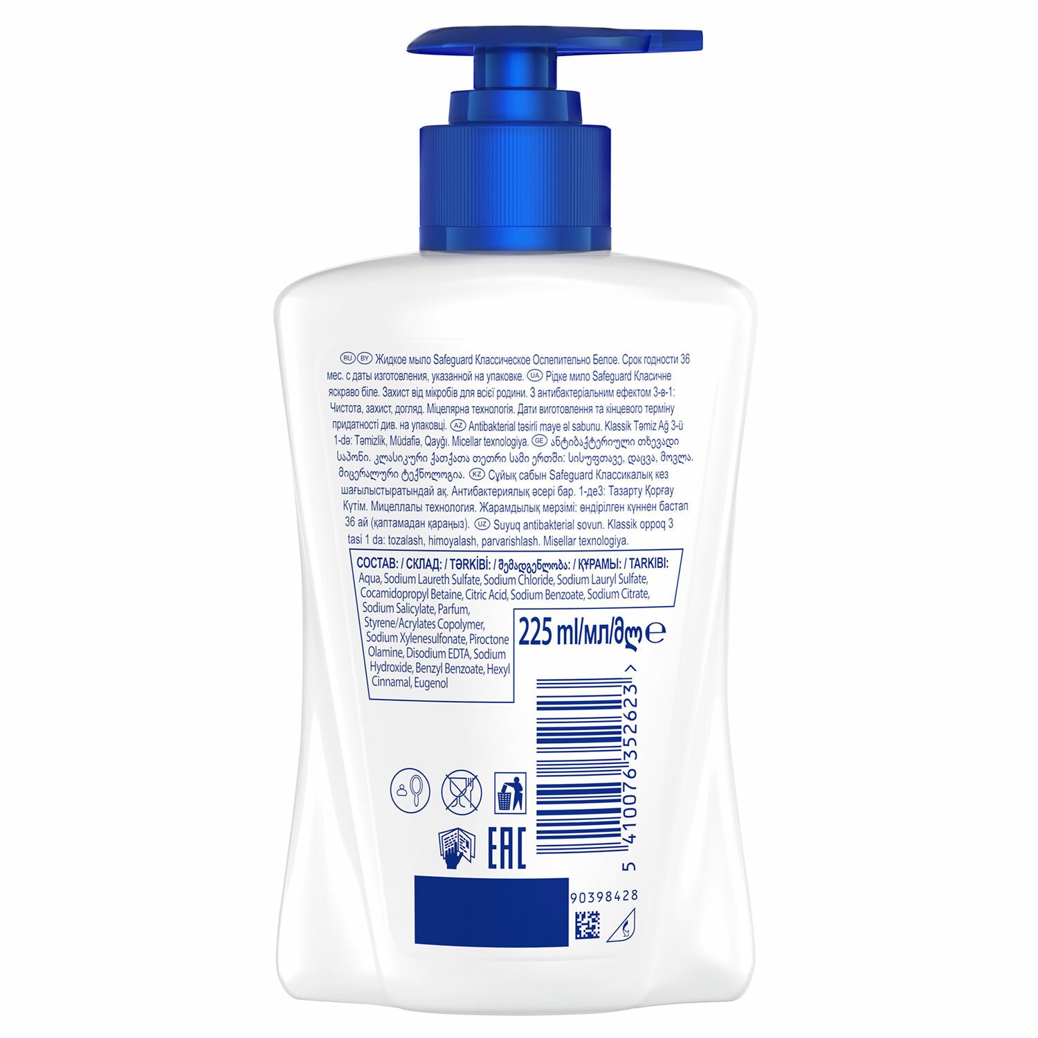 Антибактериальное мыло SAFEGUARD "Классическое" в удобной жидкой форме защищает от болезнетворных бактерий даже после смывания и подходит для ежедневного использования.