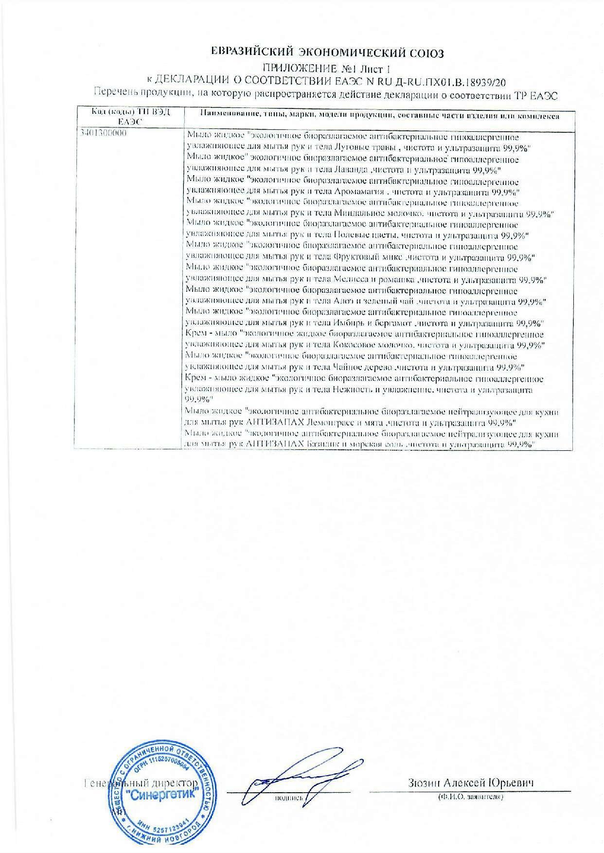 СОСТАВ/INGREDIENTS/INCI: Purify Water with Silver Ion, Sodium Laureth Sulfate, Sodium Lauroamphoacetate, PEG-4 Rapeseedamide, Glycerin, Sea Salt, Undecylenamidopropyltrimonium Methosulfate, 2-Phenoxyethanol, Nonallergenic Parfume with Natural Oils, Candida Bombicola/Glucose/Methyl Rapeseedate Ferment, Citric Acid, Melaleuca Alternafolia (Tea Tree) Leaf Oil, Eucalyptus Globulus Leaf Oil, Thymus Vulgaris (Thyme) Flower/Leaf Oil, Anthemis Nobilis Flower Oil, Melissa Officinalis Essential Oil, Vitamin Complex (A, E, F): Ethyl Linoleate, Isopropyl Myristate, Cetearyl Ethylhexanoate, Triticum Vulgare Germ Oil, Retinyl Palmitate, Retinyl Acetate, Tocopheryl Acetate, Food Dyes (Tartrazine, Brilliant Blue).