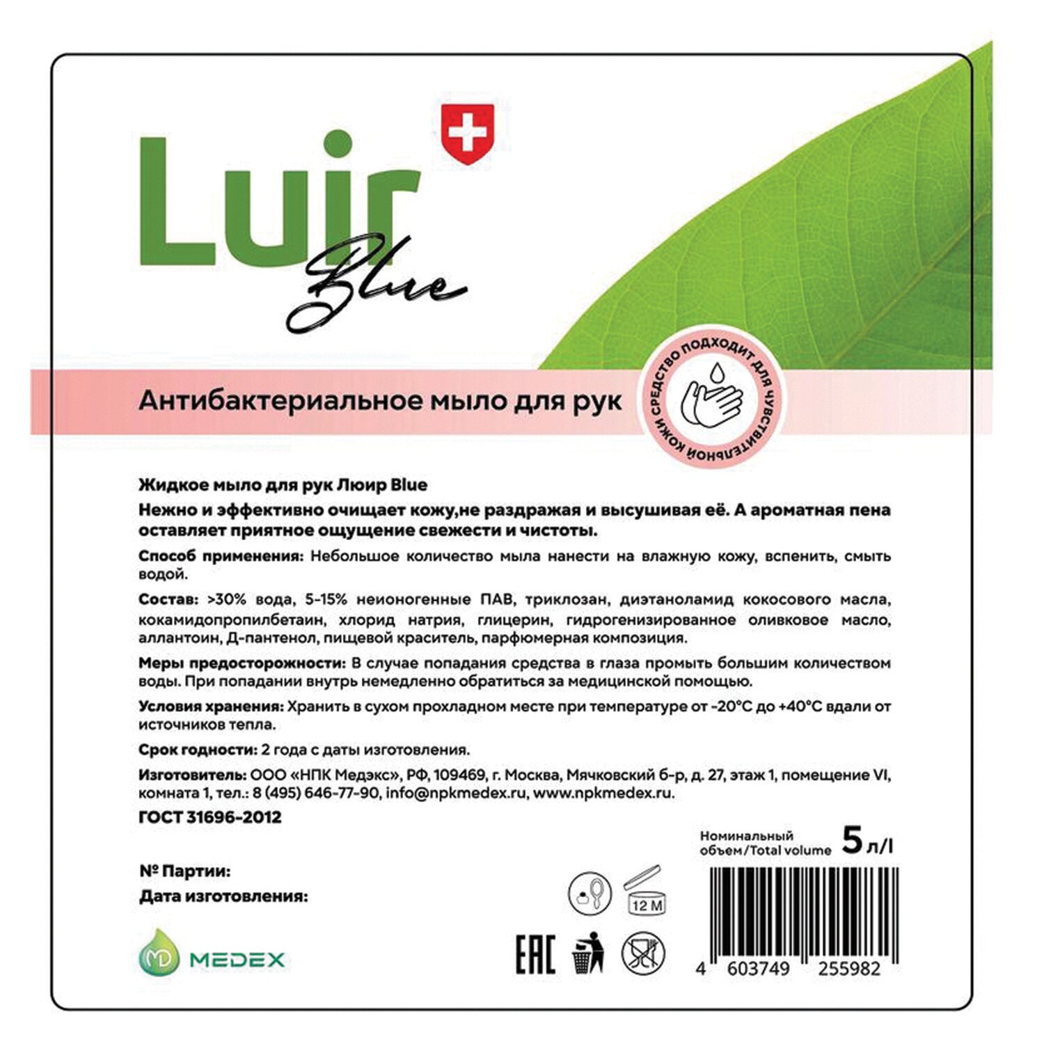Жидкое мыло «Люир» представляет собой готовую к применению непрозрачную гелеобразную жидкость голубого цвета со слабым специфическим запахом.