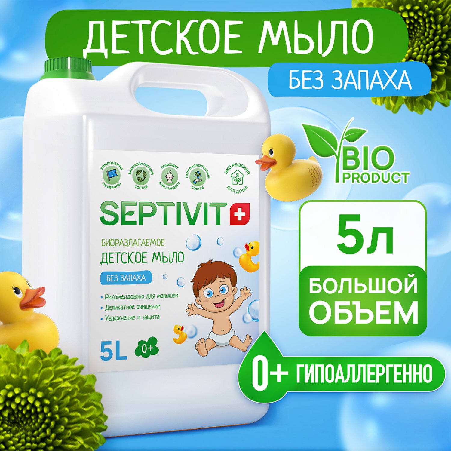 Мыло жидкое детское гипоаллергенное 5 л, SEPTIVIT "Без запаха", биоразлагаемое