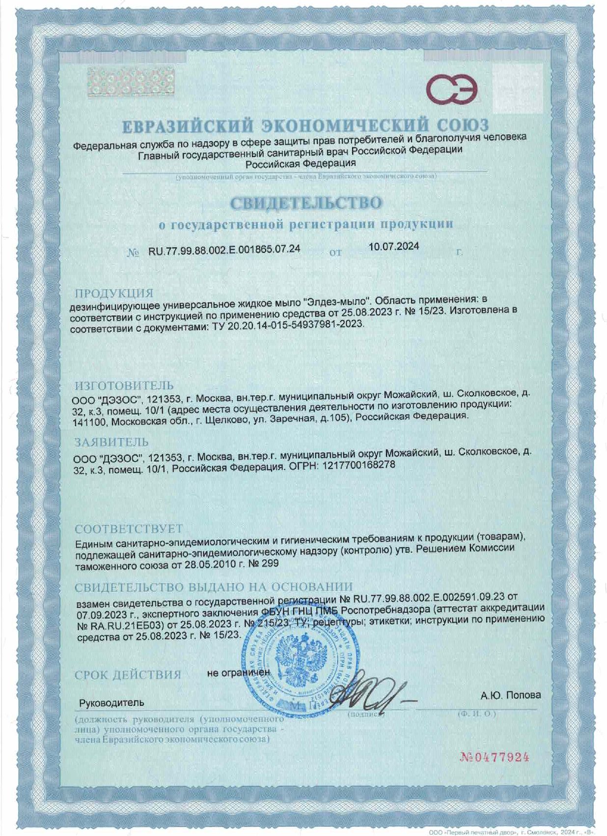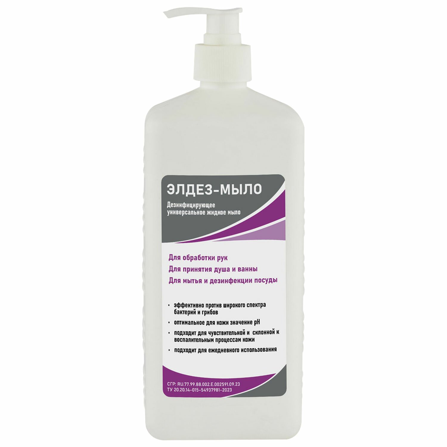 Мыло жидкое дезинфицирующее 1 л, ЭЛДЕЗ, дозатор, ЭЛ-М-371
