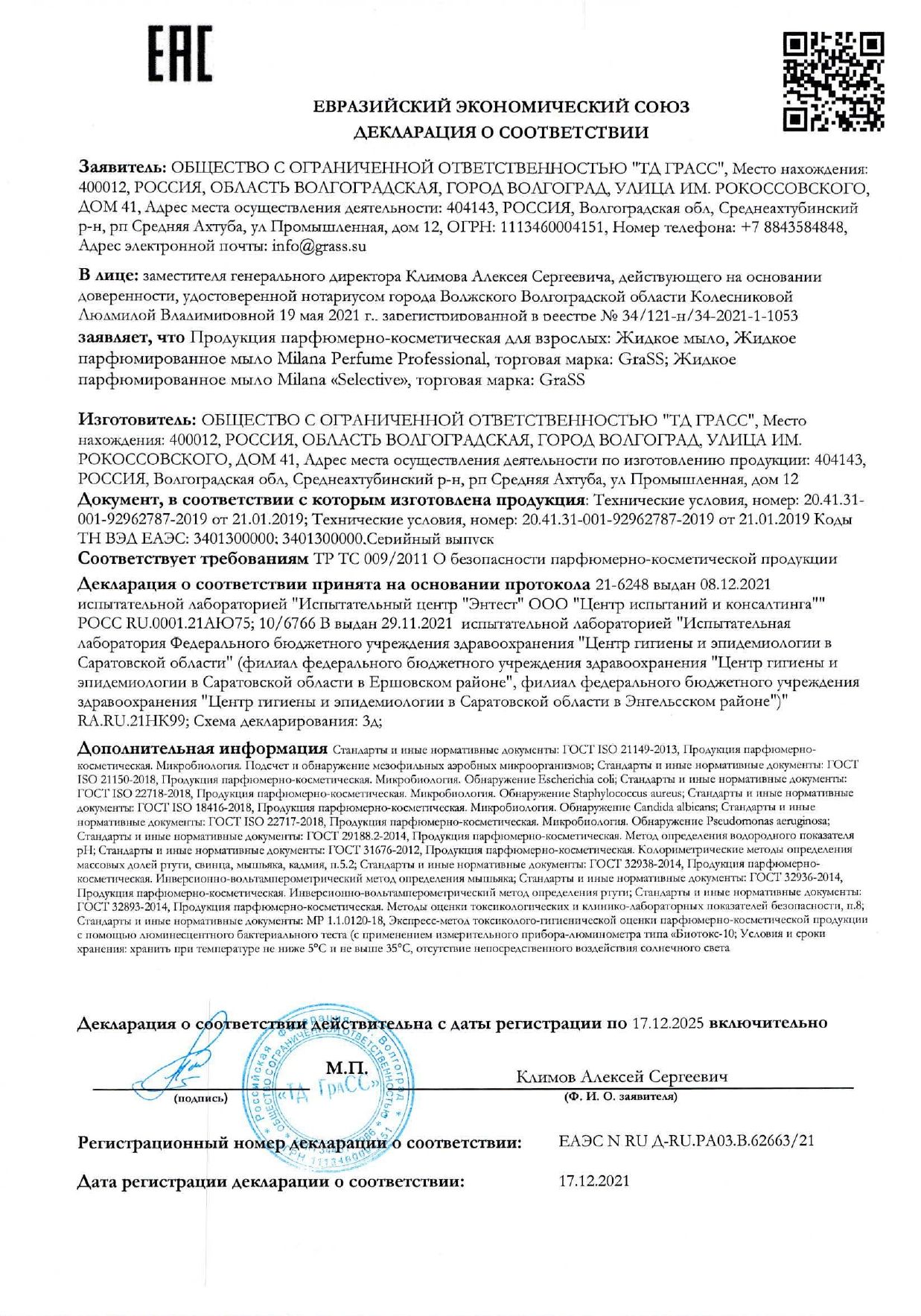 Мыло жидкое парфюмированное 1 л, GRASS MILANA "Черный перец амбра и нероли", дозатор, 125709
