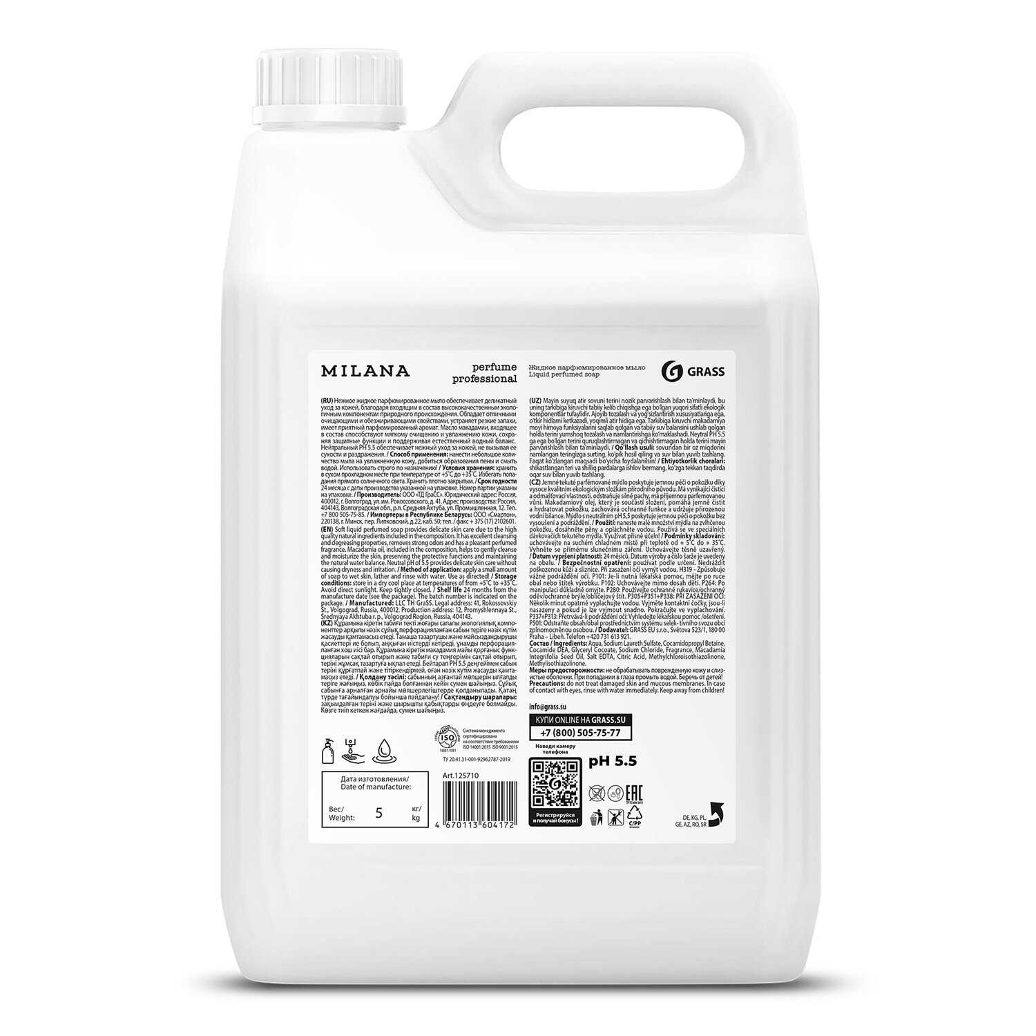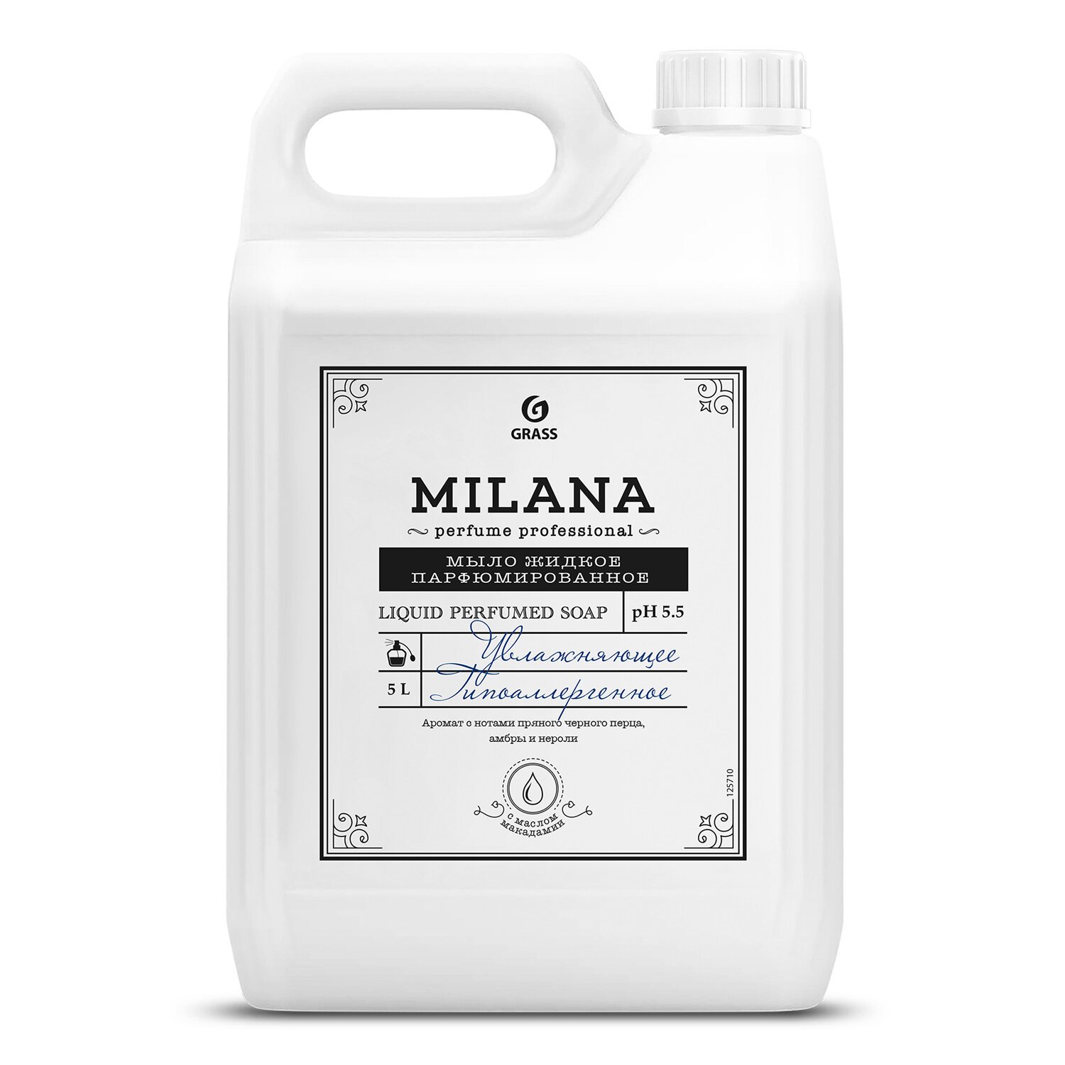 Мыло жидкое парфюмированное гипоаллергенное 5л GRASS MILANA "Черный перец, амбра и нероли", 125710