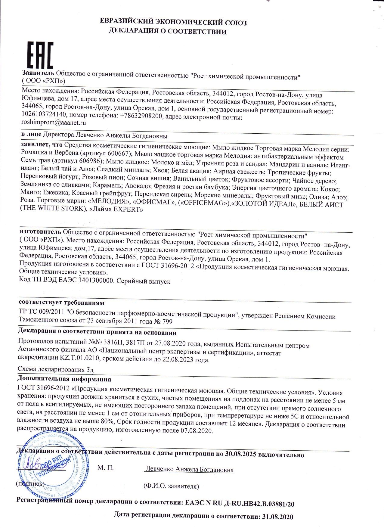 Жидкое мыло МЕЛОДИЯ идеально подходит для использования в офисах, отелях, ресторанах и других общественных местах.