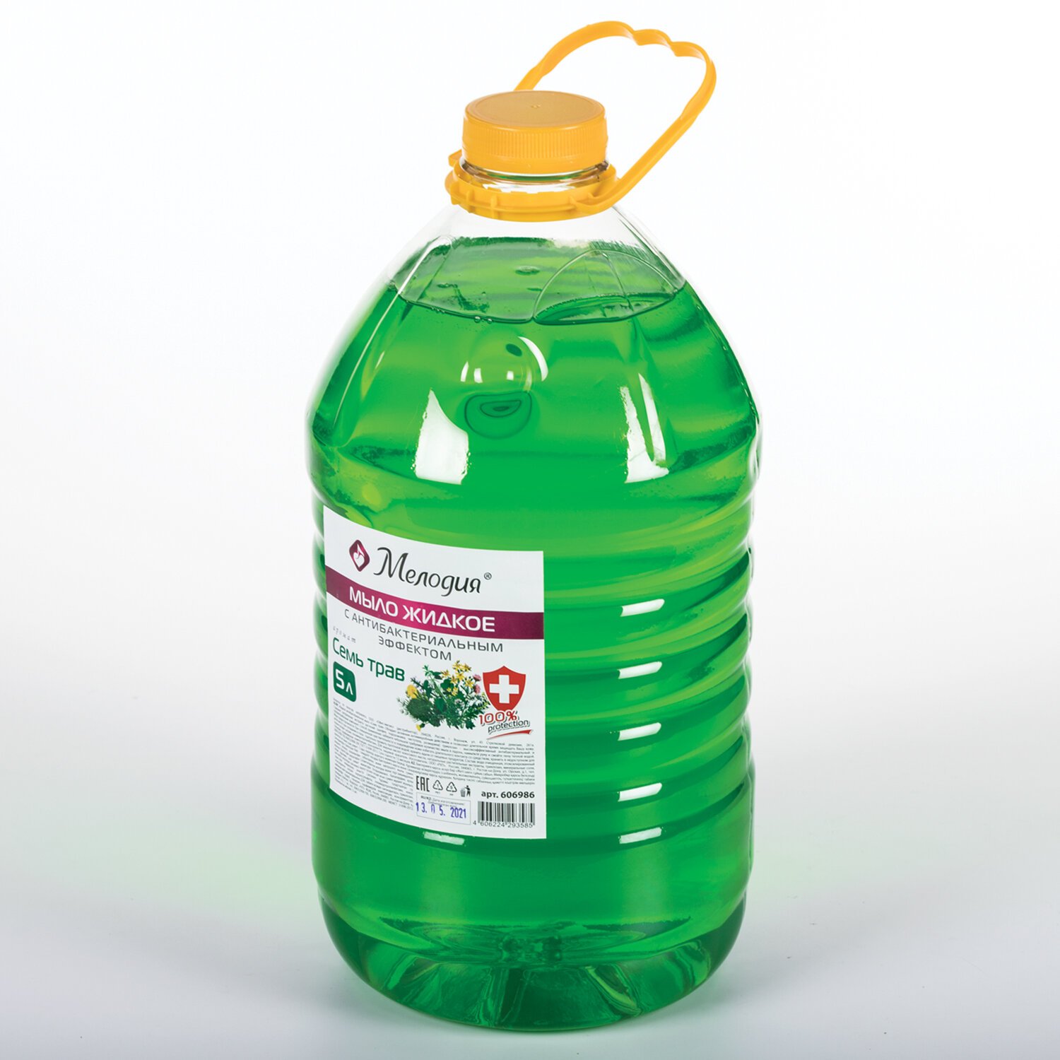 Мыло жидкое с антибактериальным эффектом 5 л МЕЛОДИЯ "Семь трав", ПЭТ, 606986