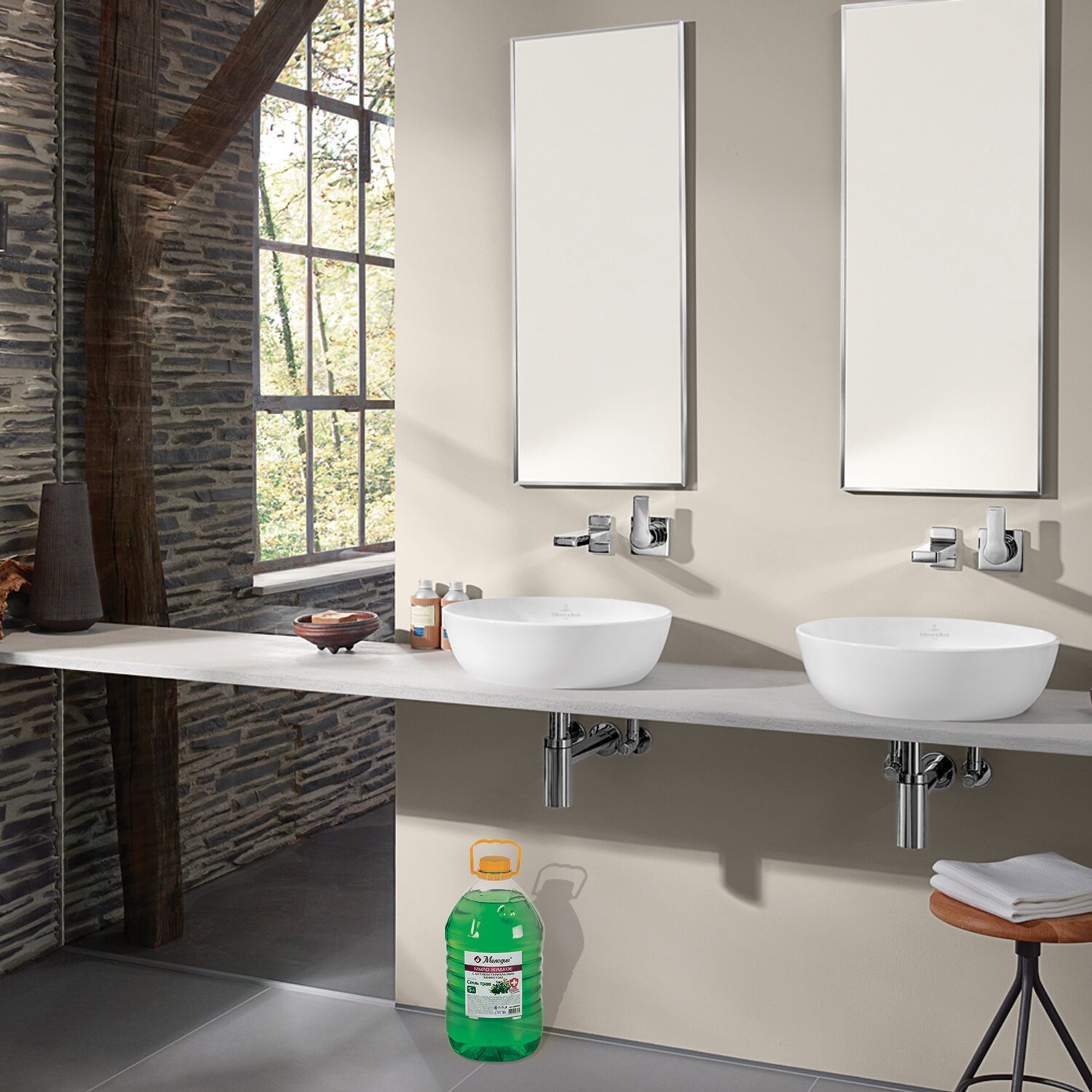 Средство универсального применения отлично очищает и смягчает кожу, обеспечивает уход и увлажнение, обладает приятным ароматом эфирных масел. Обладает активным антимикробным действием и позволяет длительное время защищать Вашу кожу. Содержит натуральные экстракты растений (шалфея, подорожника, чистотела, розмарина), а также триклозан – высокоэффективный антибактериальный и противогрибковый компонент. Большого объема 5 л хватит надолго, что позволит сэкономить время и средства. При необходимости можно перелить во флакон с дозатором.