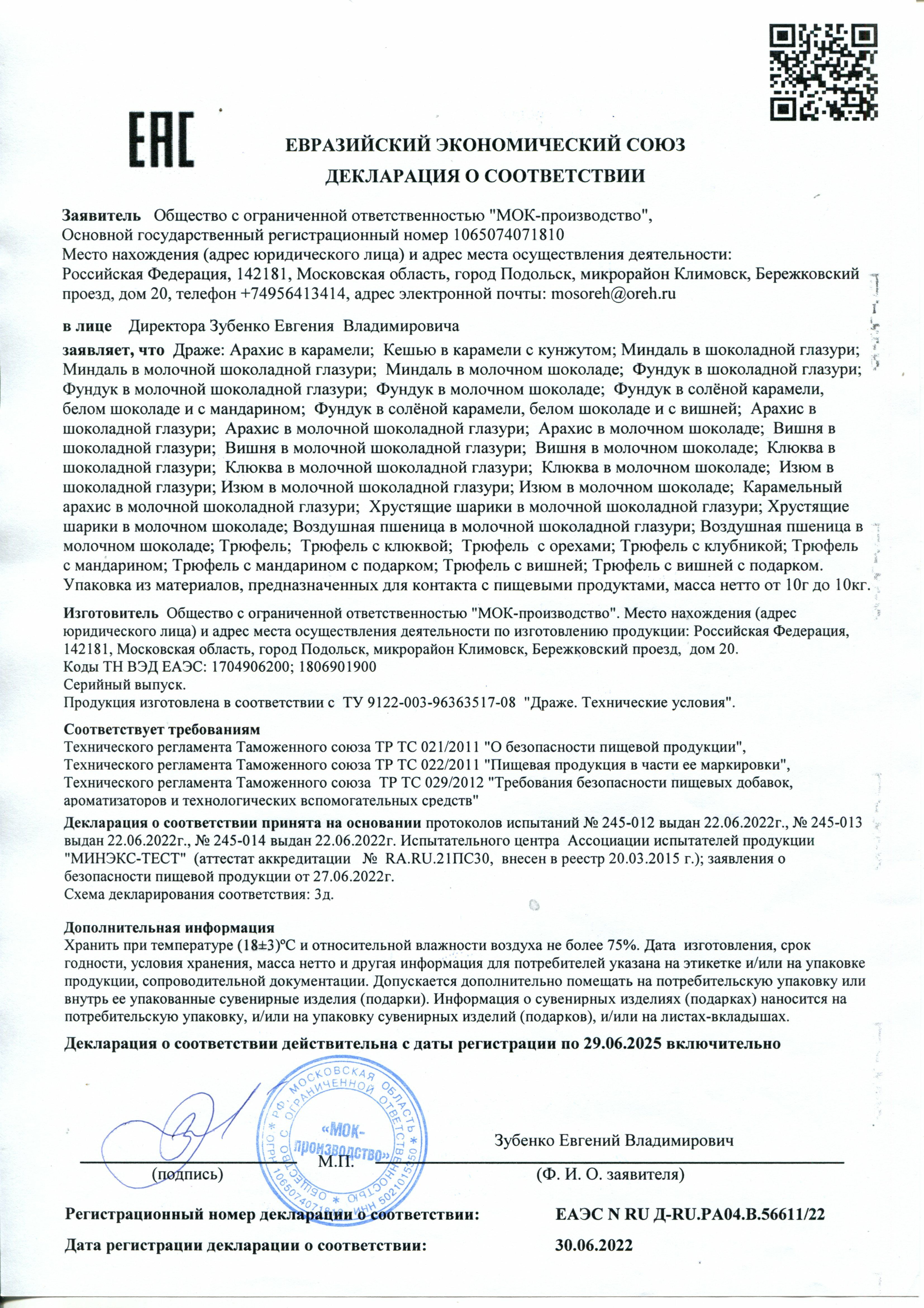 Состав: шоколадная глазурь (сахар, эквивалент масла какао шоклин Р, тертое какао, какао-порошок, эмульгаторы соевый лецитин и Е476, ароматизатор - ванилин), ядра миндаля обжаренные, глазирователь Е904, стабилизатор гуммиарабик.