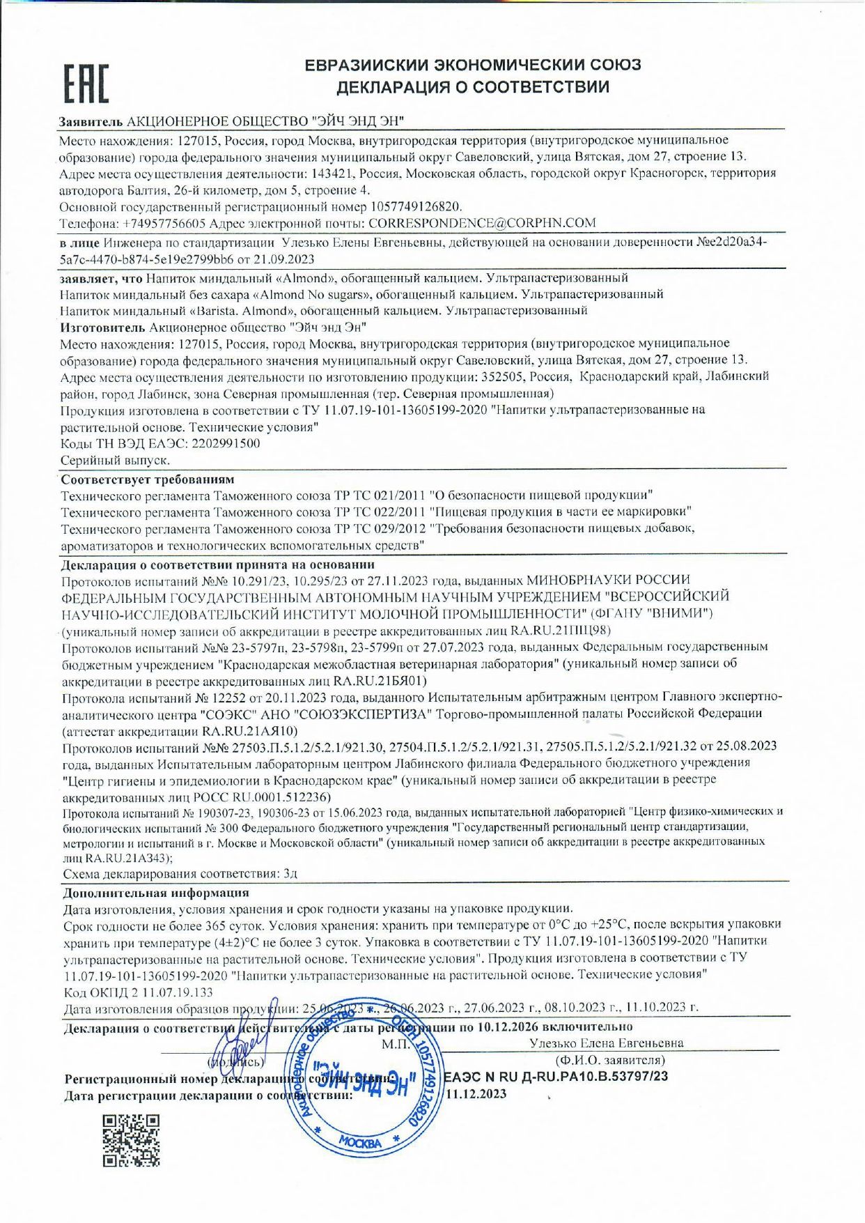 Состав: миндальная основа (вода, миндальная паста из обжаренного миндаля (100%)), сахар, регуляторы кислотности (орто-фосфат калия 2-замещенный, орто-фосфат калия 1-замещенный), карбонат кальция (источник кальция), натуральные ароматизаторы, стабилизаторы (геллановая камедь, гуаровая камедь), соль, эмульгатор (лецитины (подсолнечный)).
