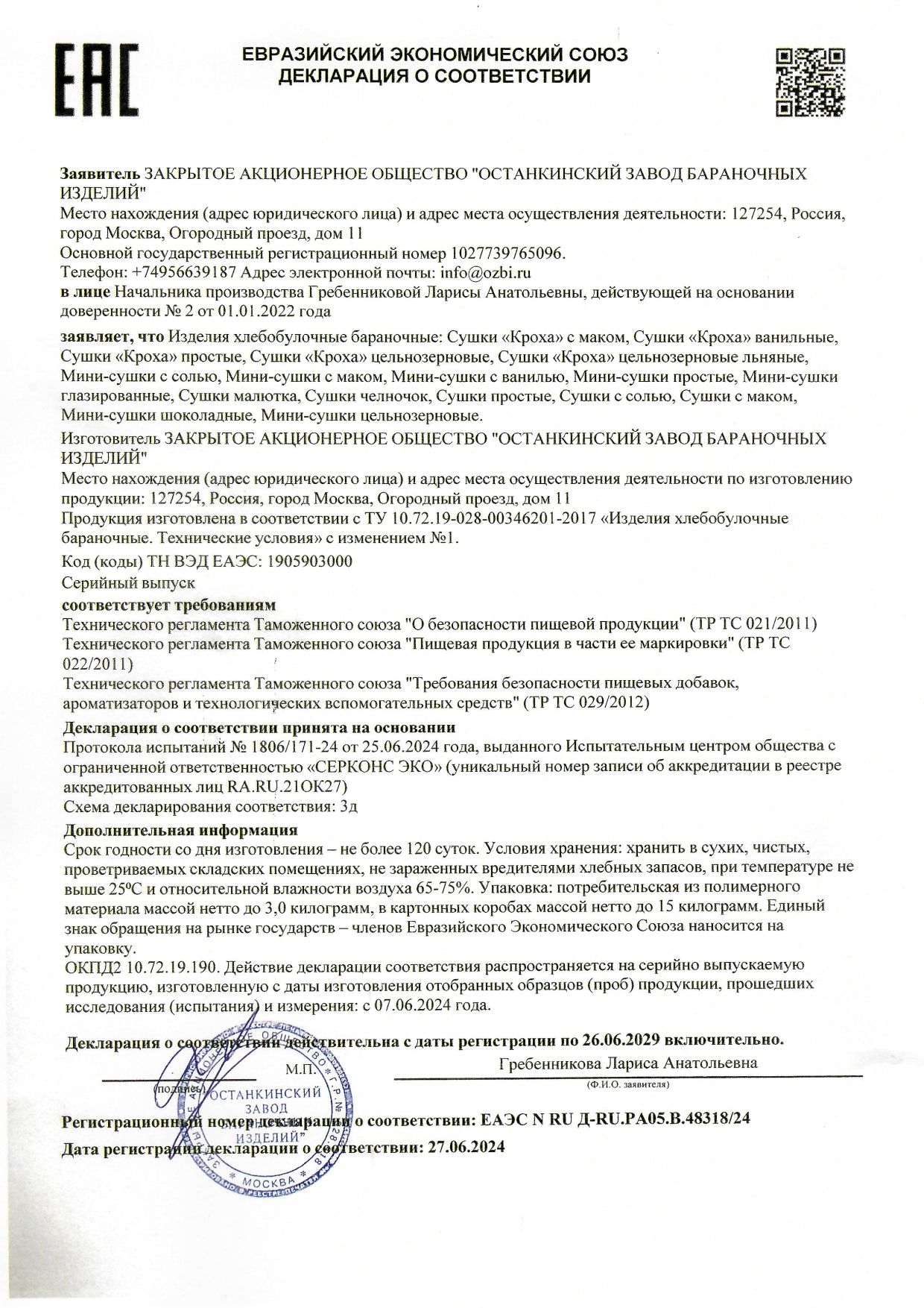 В составе сушек СЕМЕЙКА ОЗБИ присутствуют только натуральные ингредиенты. Для изготовления применяется классический способ производства.