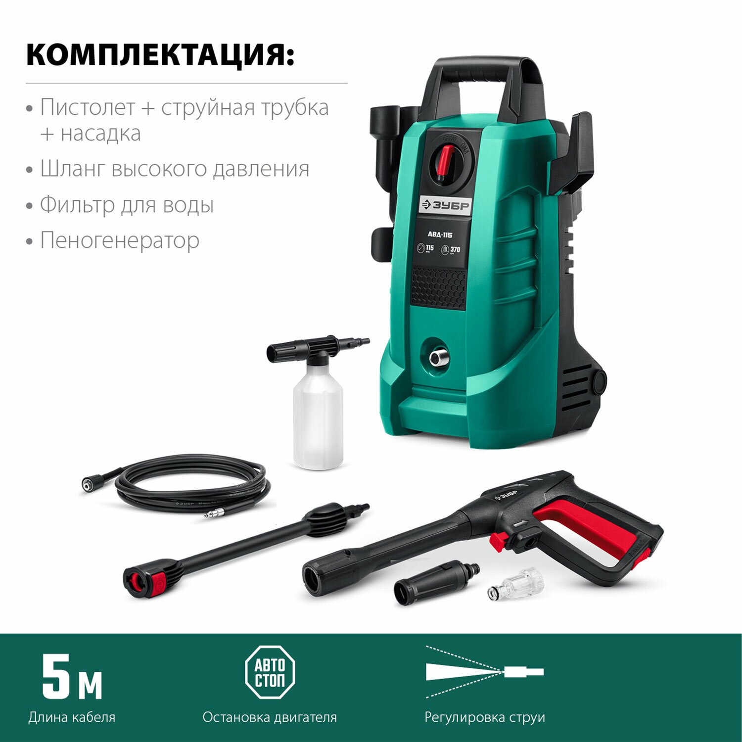 Минимойка ЗУБР АВД-115, мощность 1,5 кВт, давление 115 бар, шланг 5 м