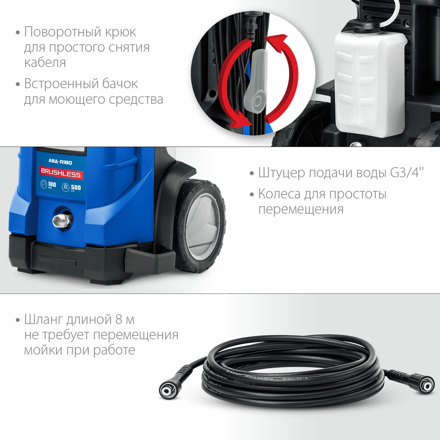 Профессиональные мойки высокого давления оснащены бесщеточным двигателем с низкими оборотами и высоким крутящим моментом, используются как для бытовых нужд, так и в сфере клининга или на профессиональной автомойке.