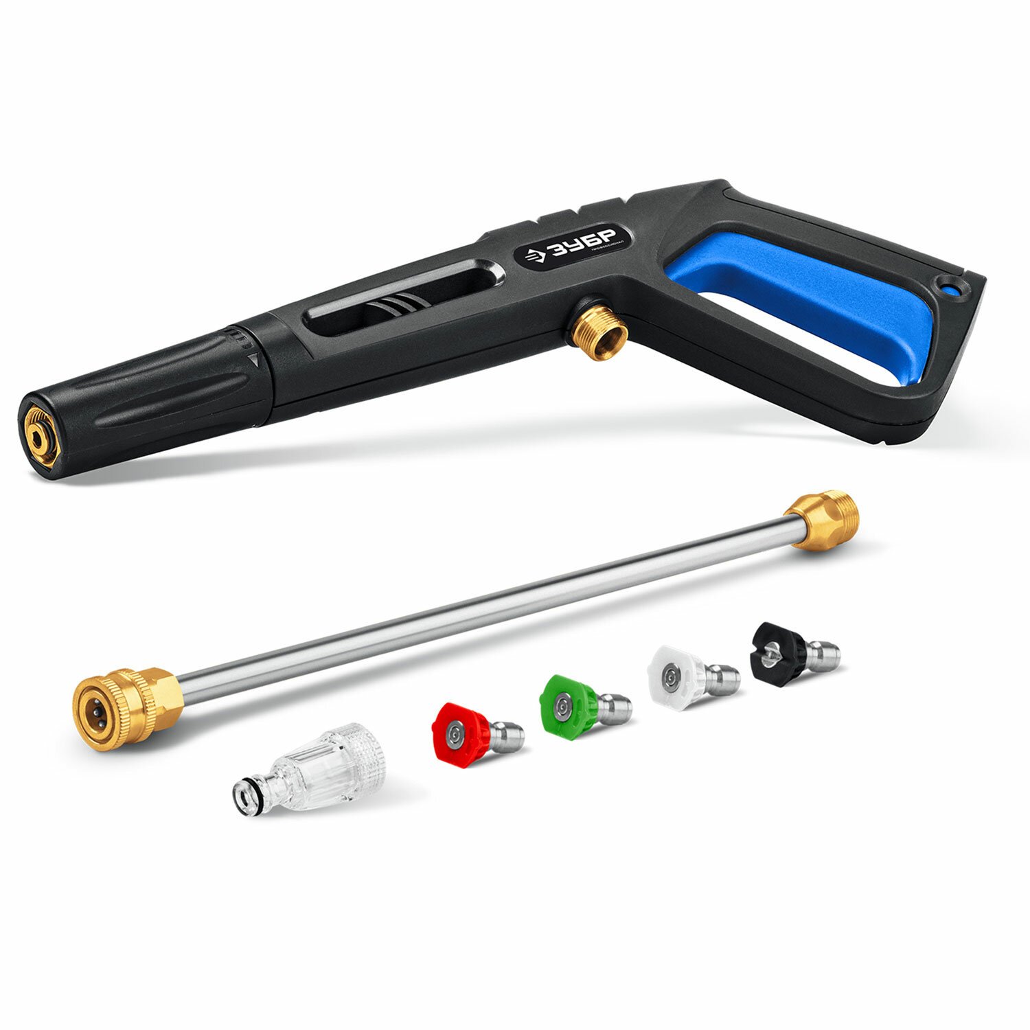В комплекте идут сменные быстросъемные насадки с различными углами распыления для формирования струи различного давления, а также для нанесения моющего средства: