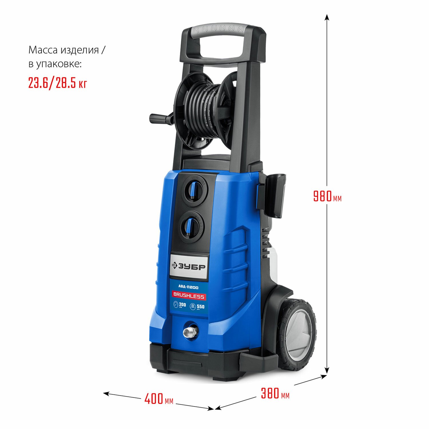 Минимойка ЗУБР АВД-П200, мощность 2,6 кВт, давление 200 бар, шланг 8 м
