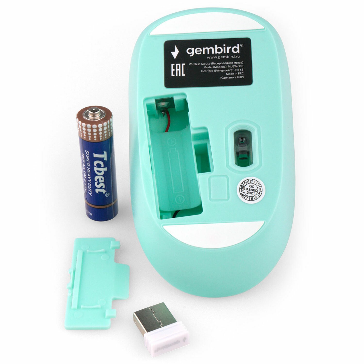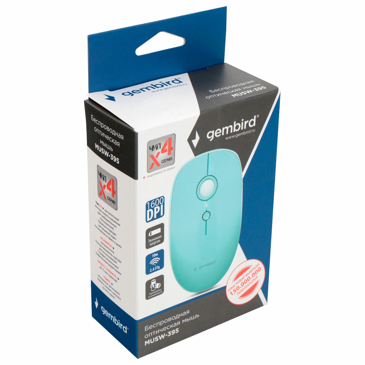 Мышь беспроводная GEMBIRD MUSW-395, 3 кнопки + 1 колесо-кнопка, оптическая, бирюзовая