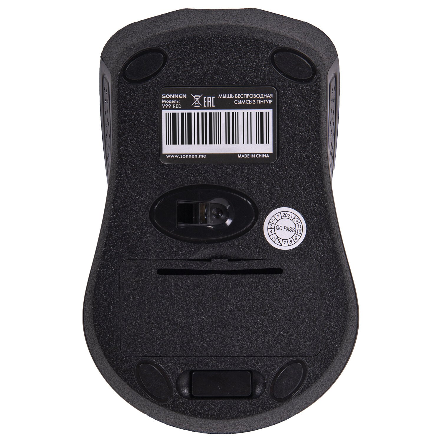 Мышь беспроводная SONNEN V99, USB, 1000/1200/1600 dpi, 4 кнопки, оптическая, красная, 513529