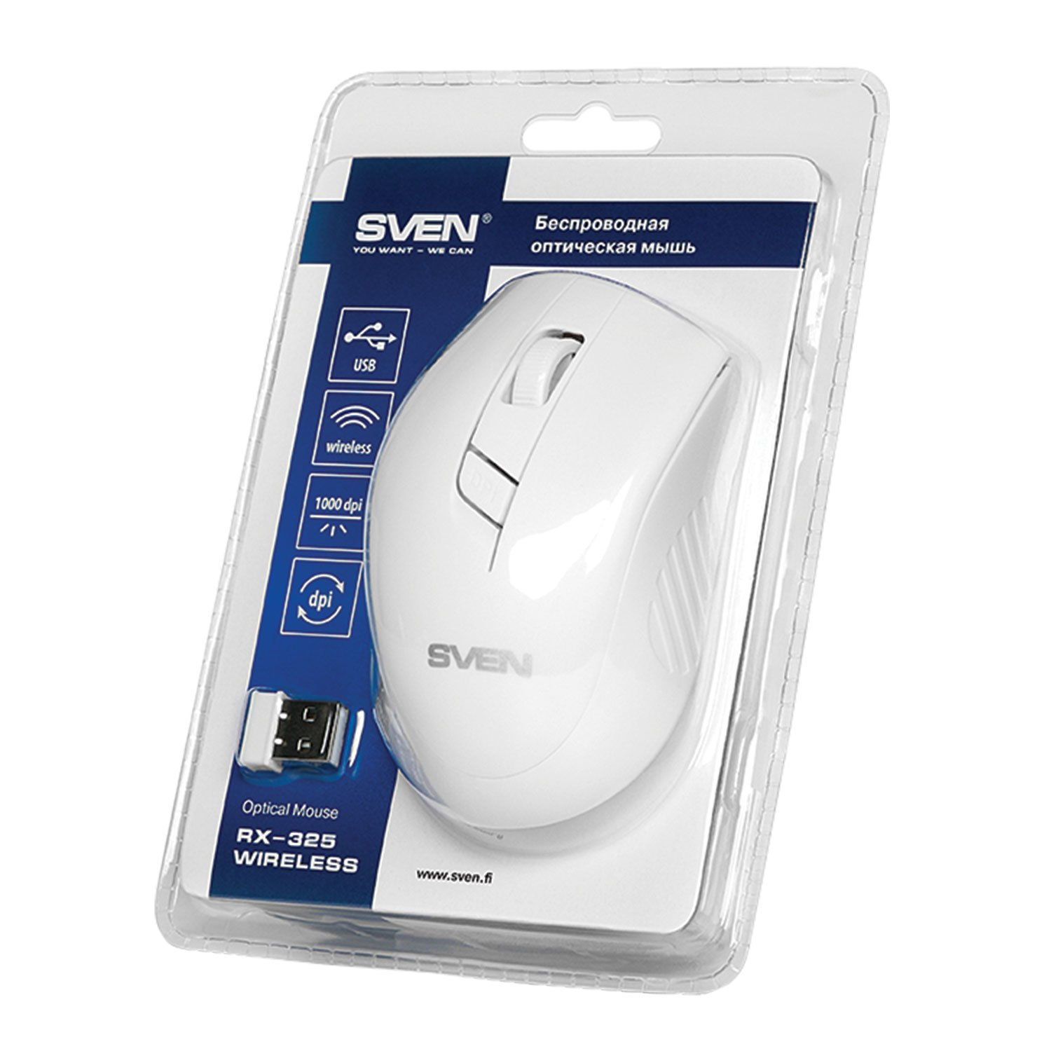 Мышь беспроводная SVEN RX-325, 3 кнопки + 1 колесо-кнопка, оптическая, белая, SV-03200325WW