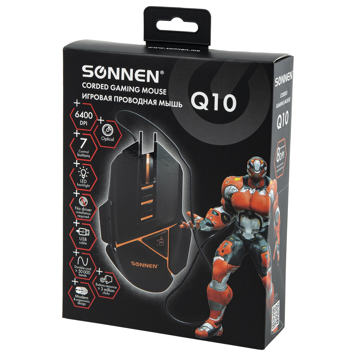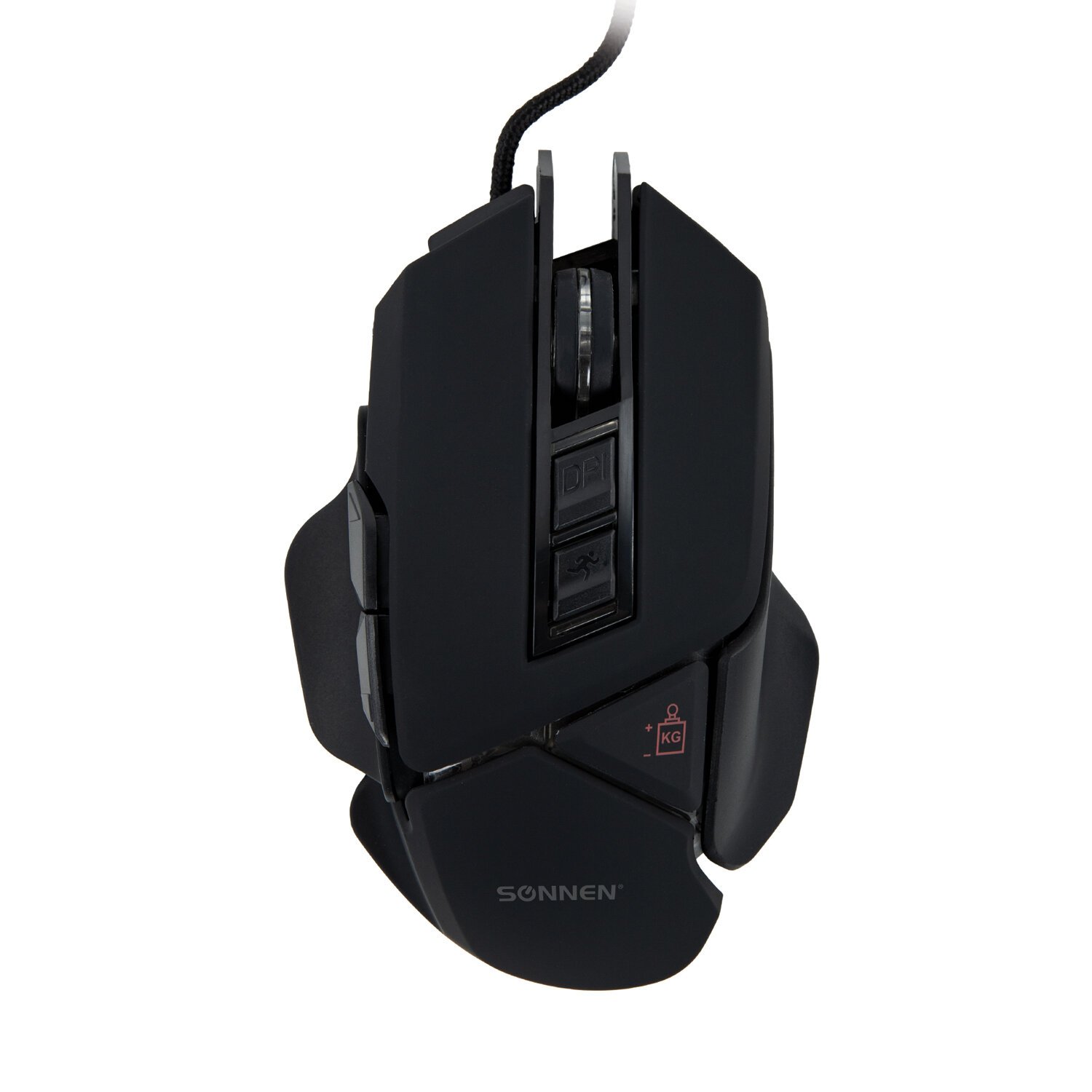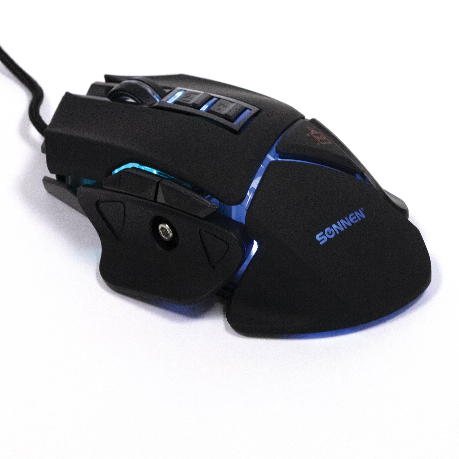 Мышь проводная SONNEN Q10, 7 кнопок, 6400 dpi, LED-подсветка, черная, 513522