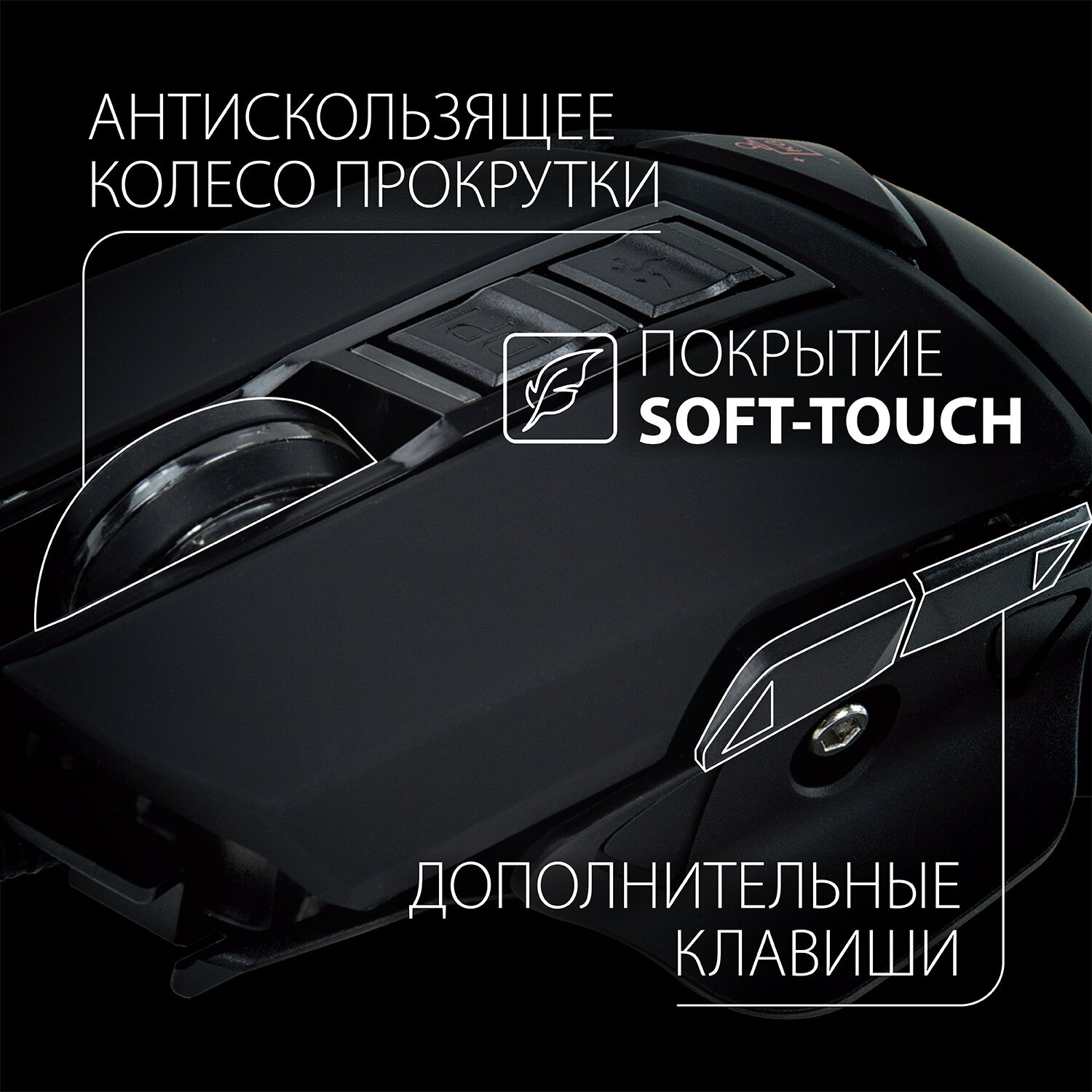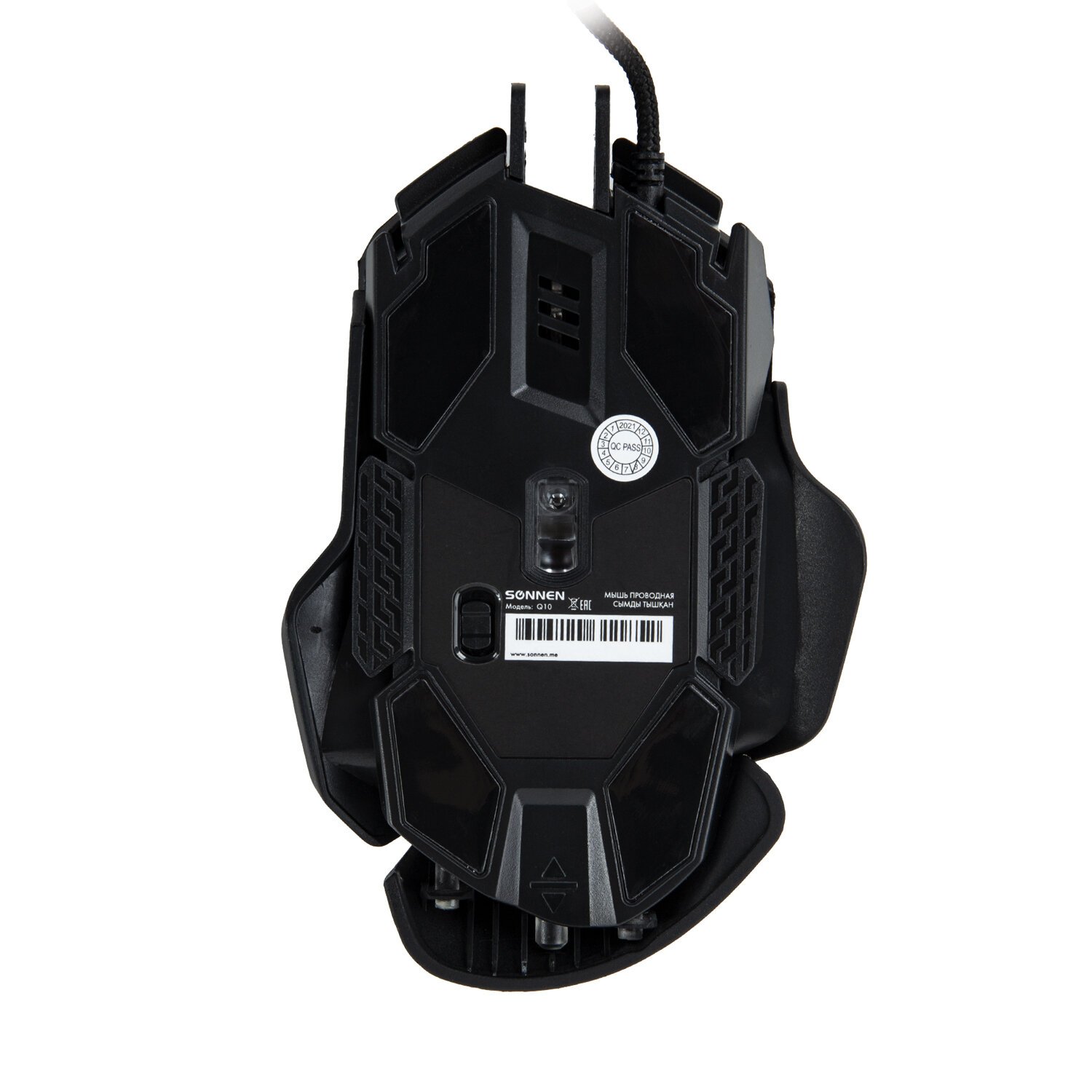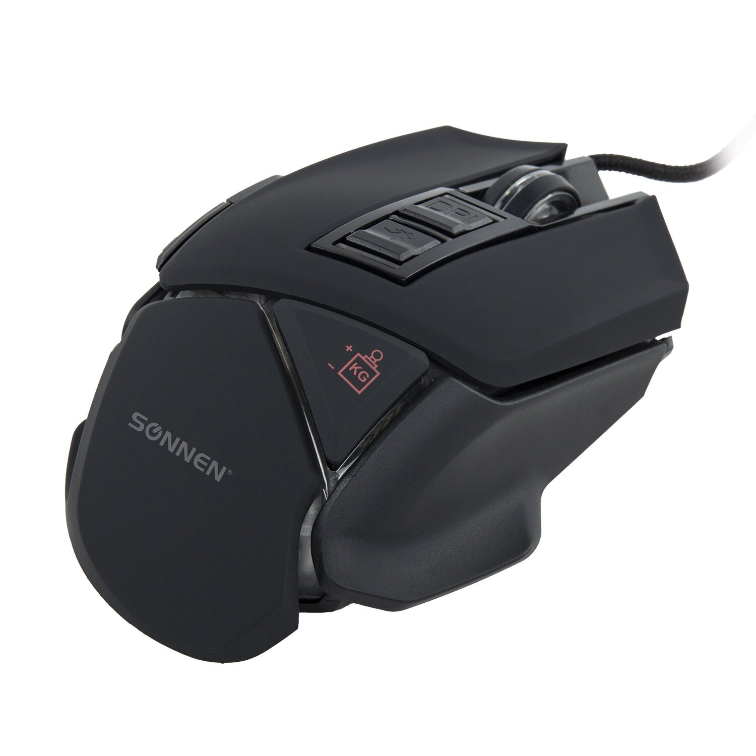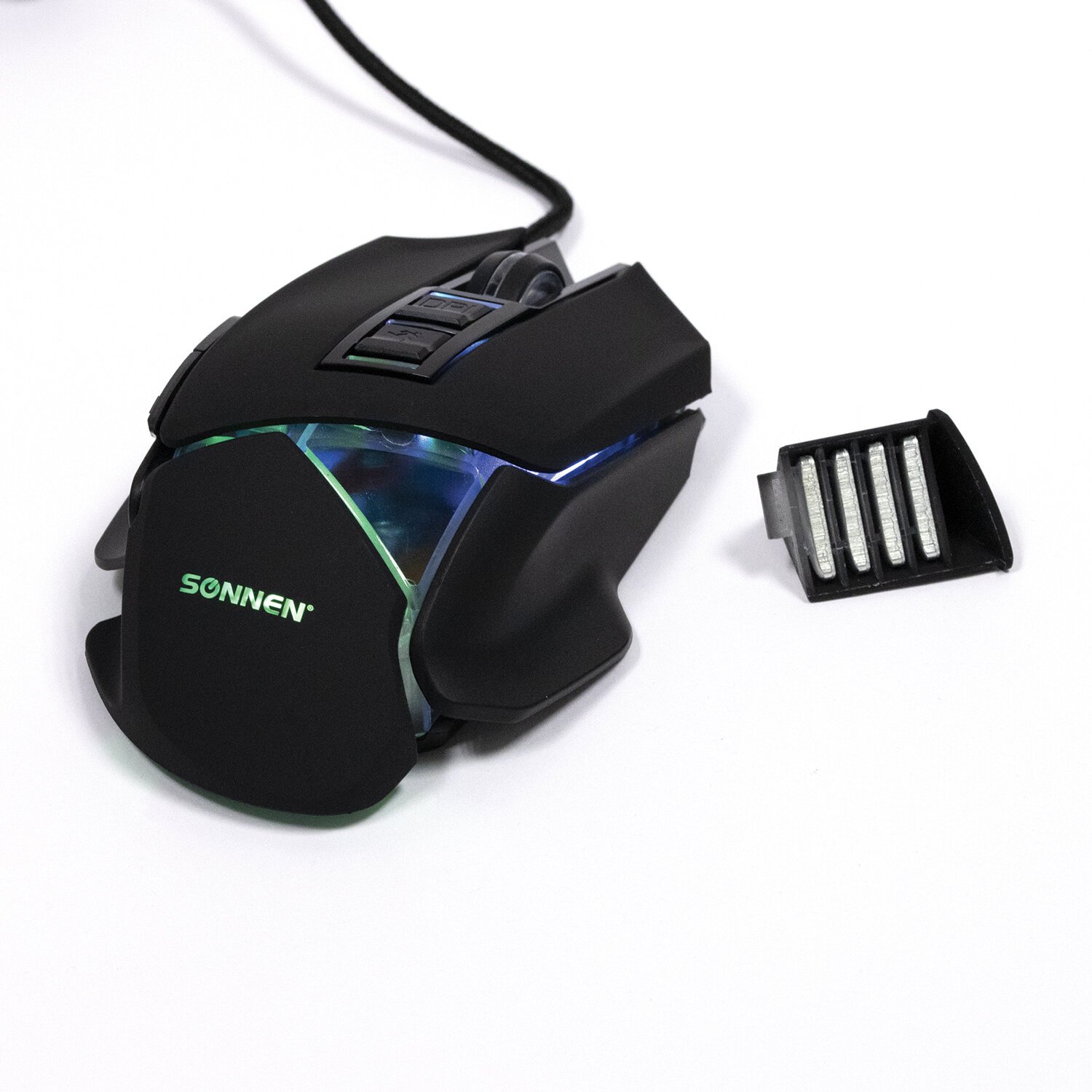 Мышь проводная SONNEN Q10, 7 кнопок, 6400 dpi, LED-подсветка, черная, 513522